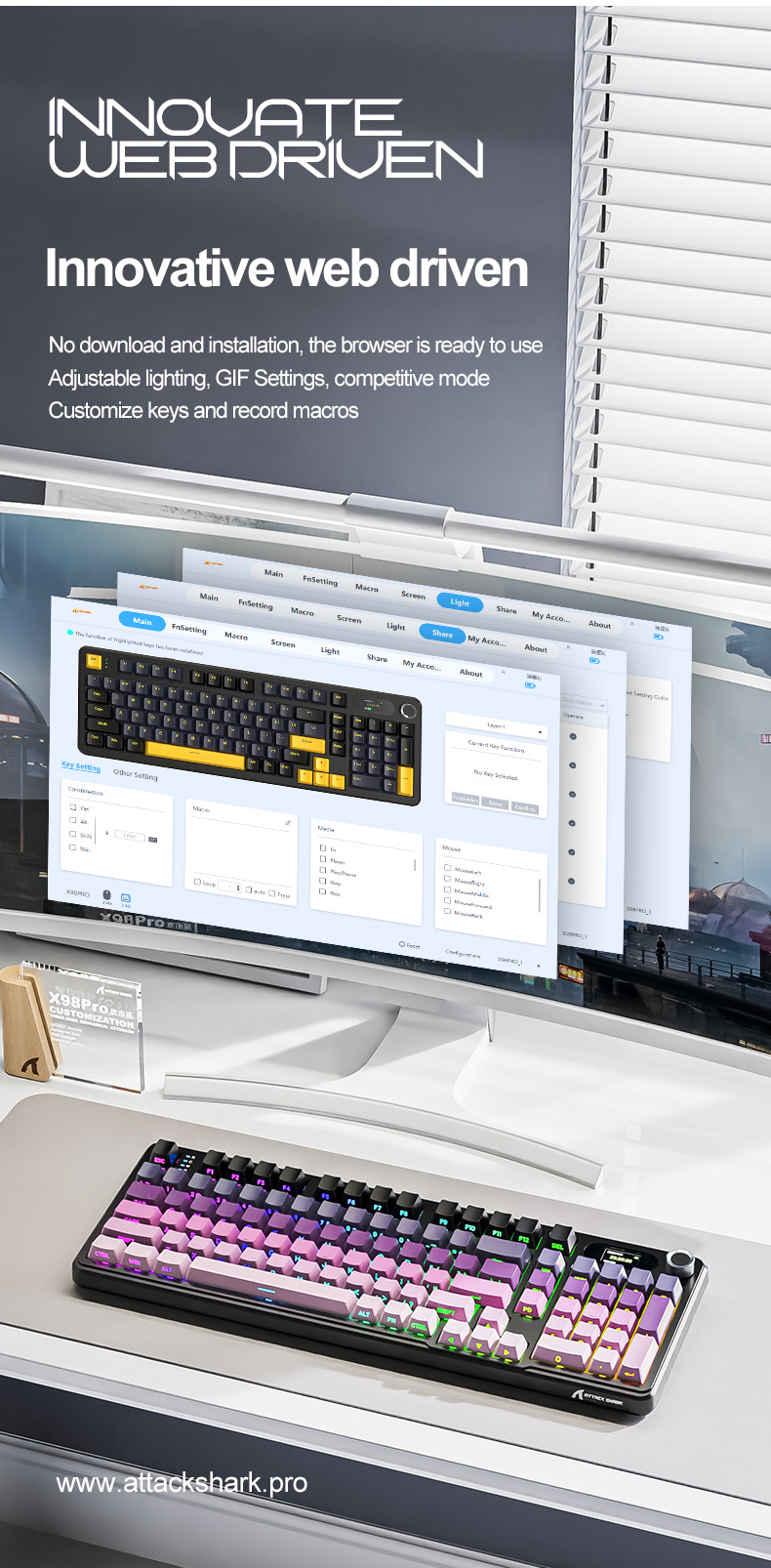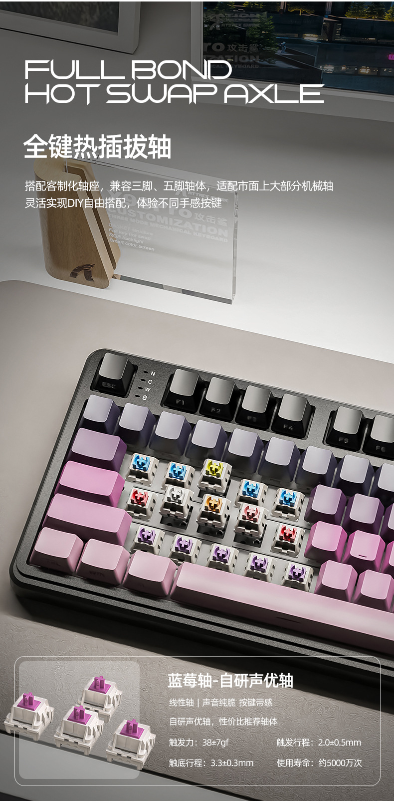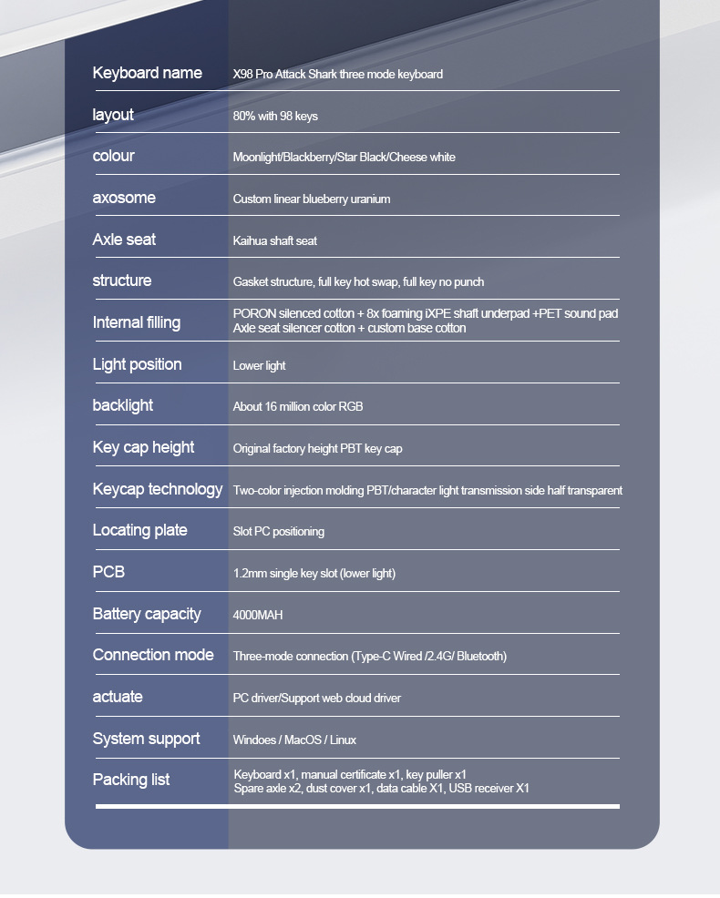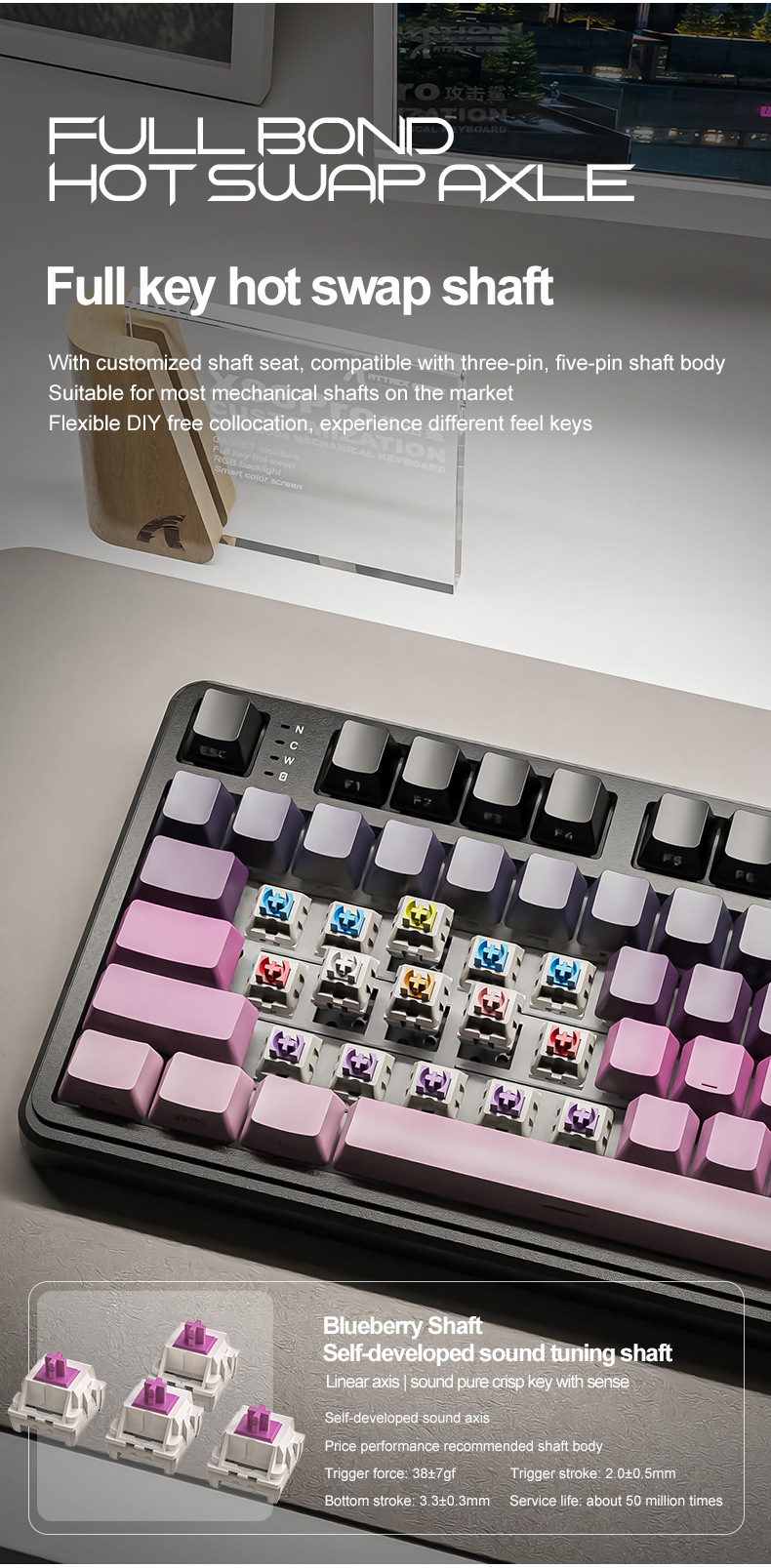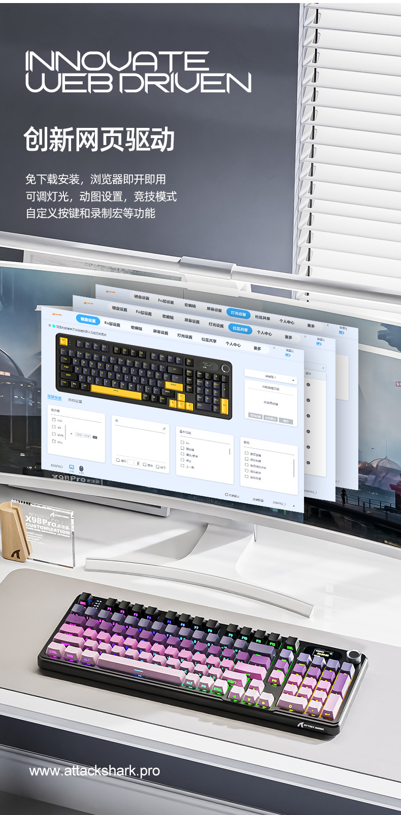 攻击鲨X98PRO无线RGB三模带屏机械键盘