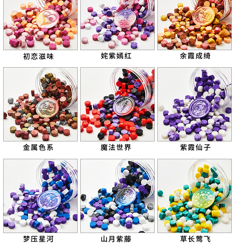 화재 옻칠 왁스 곡물 혼합 색상 도매 결혼식 초대장 봉투 밀봉 왁스 빈티지 팔각형 불 옻칠 왁스 곡물 씰 왁스스토어 가기