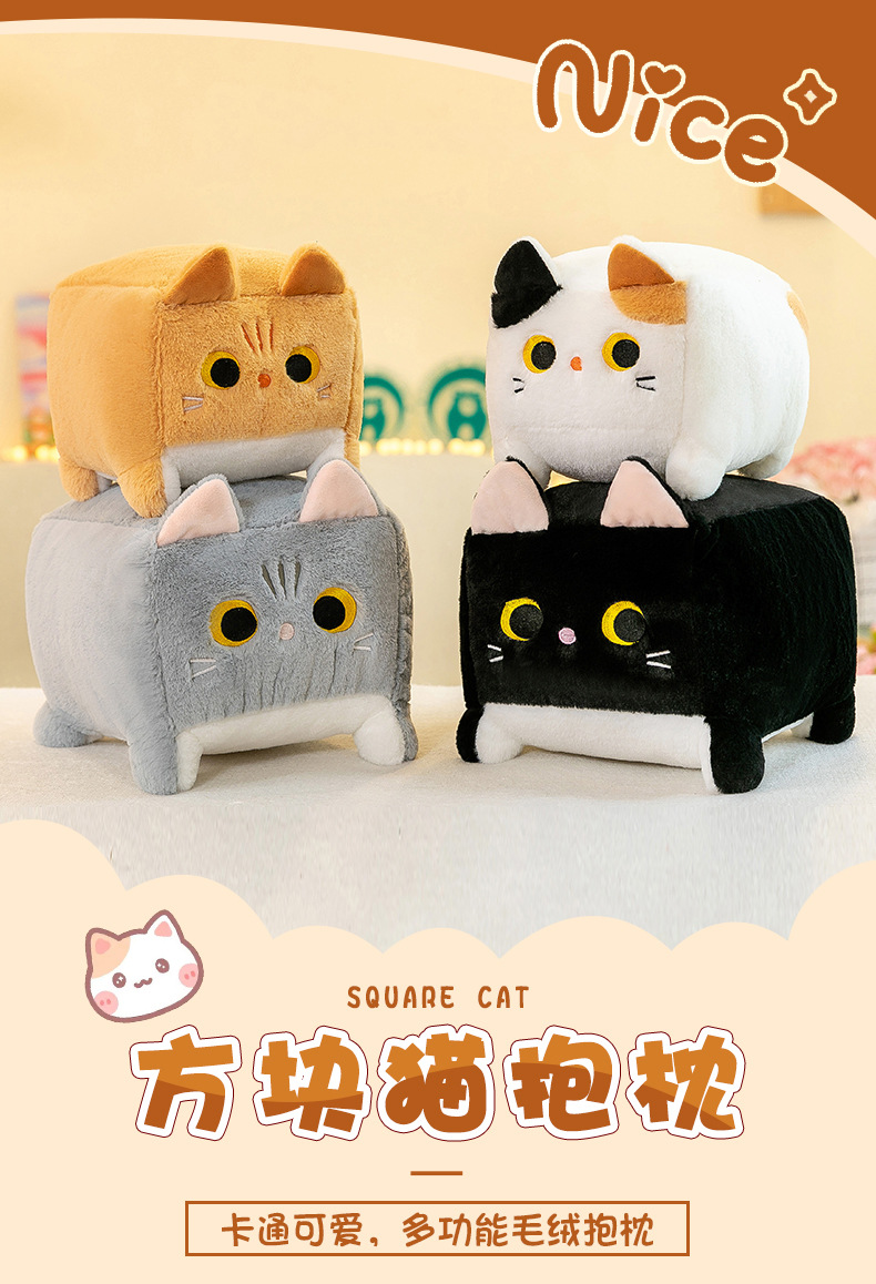국경 간 귀여운 사각형 고양이 인형 검은 고양이 국경 간 사각형 고양이 플러시 장난감 헝겊 인형 제조 업체 도매스토어 가기