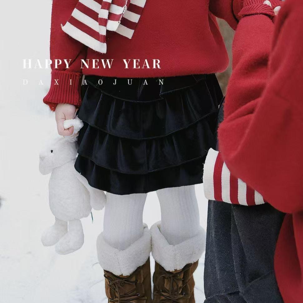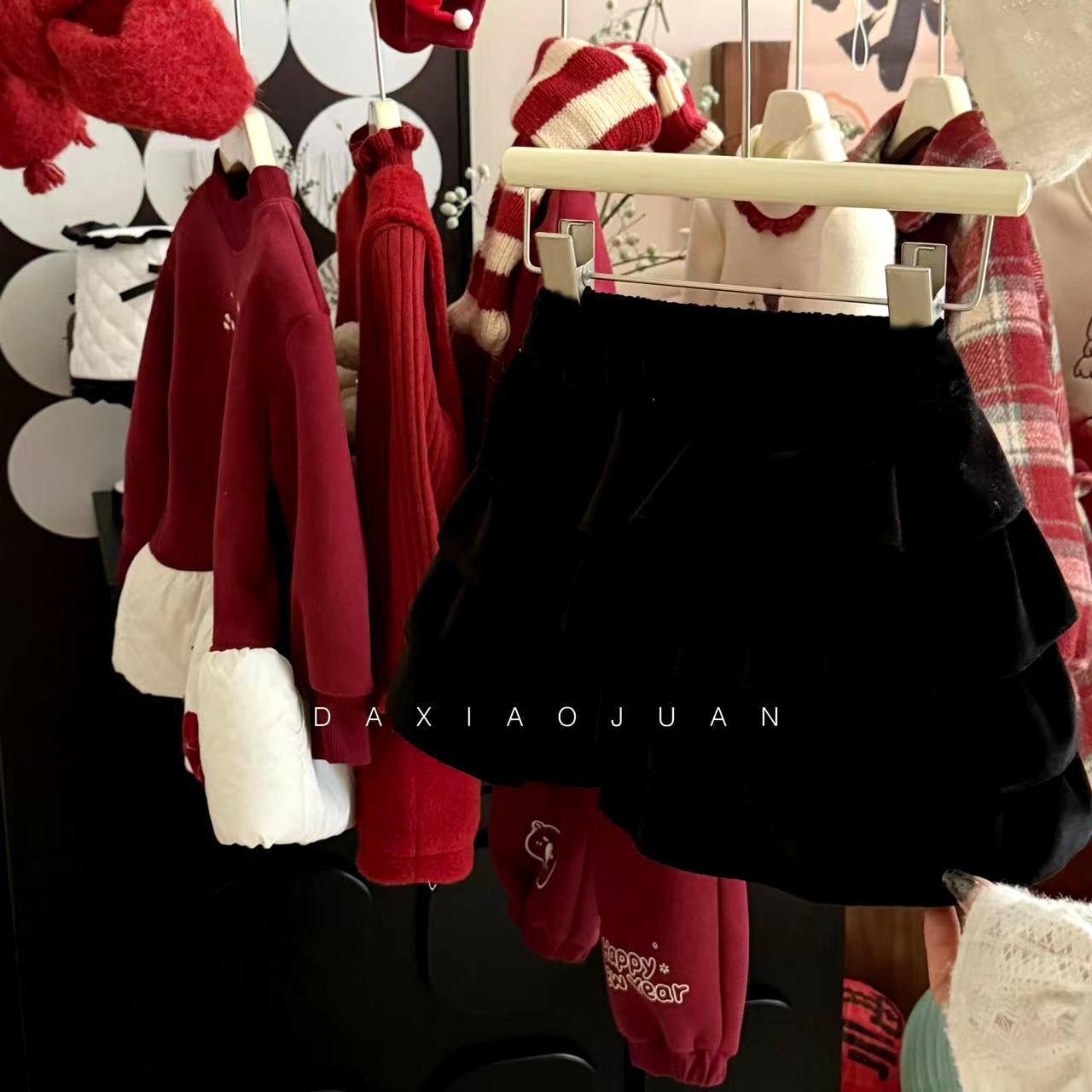 크고 작은 롤 [트러플 작은 검은 스커트] 겨울 소녀 기모 스커트 다목적 단색 벨벳 서양식 케이크 스커트