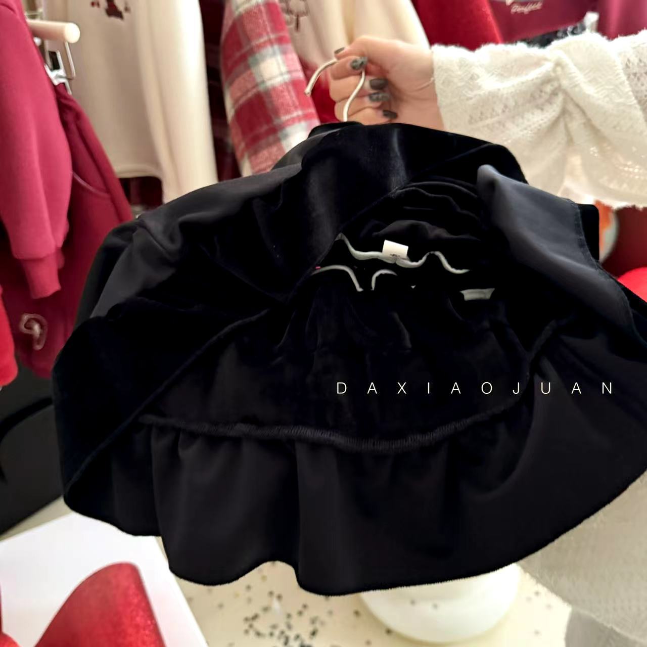 크고 작은 롤 [트러플 작은 검은 스커트] 겨울 소녀 기모 스커트 다목적 단색 벨벳 서양식 케이크 스커트스토어 가기