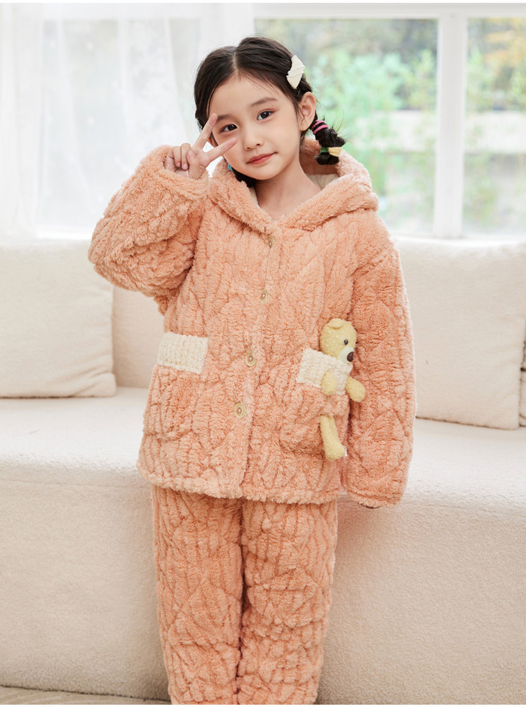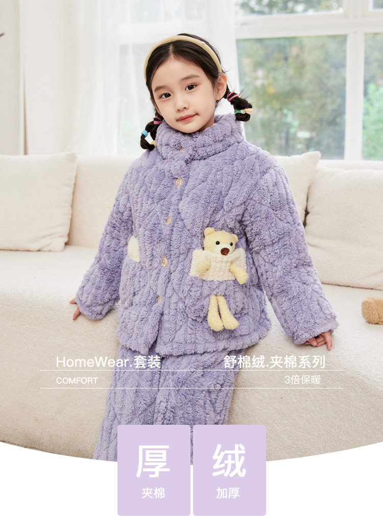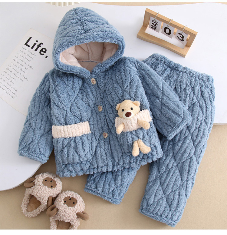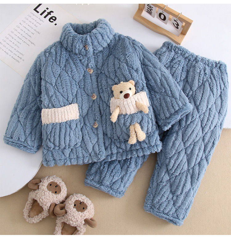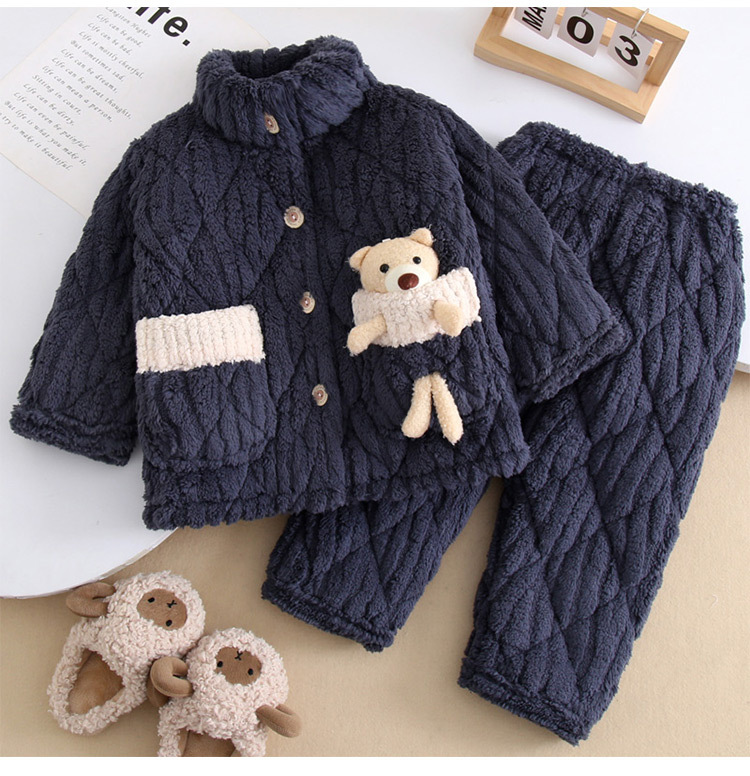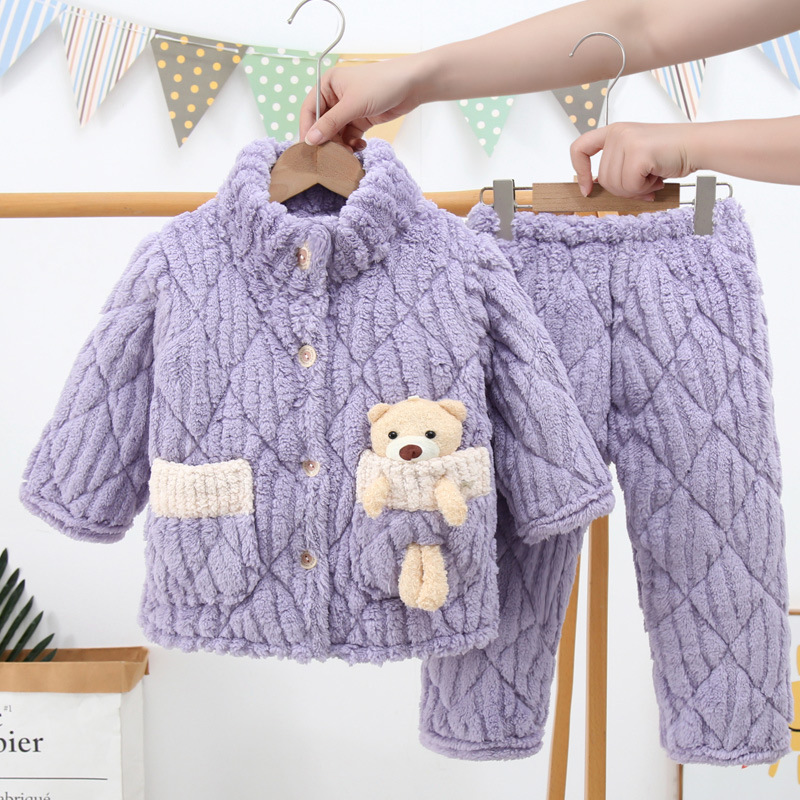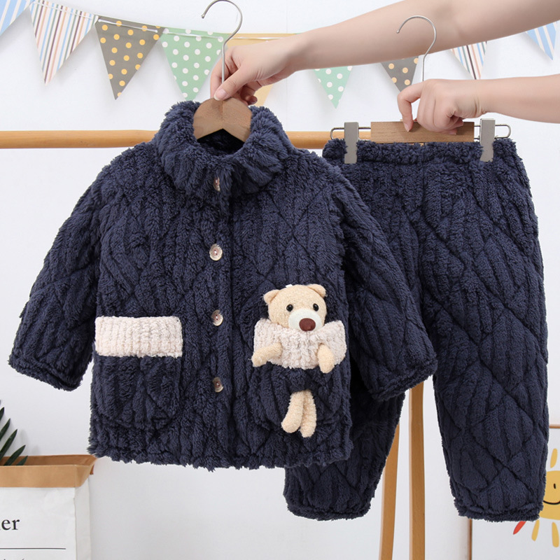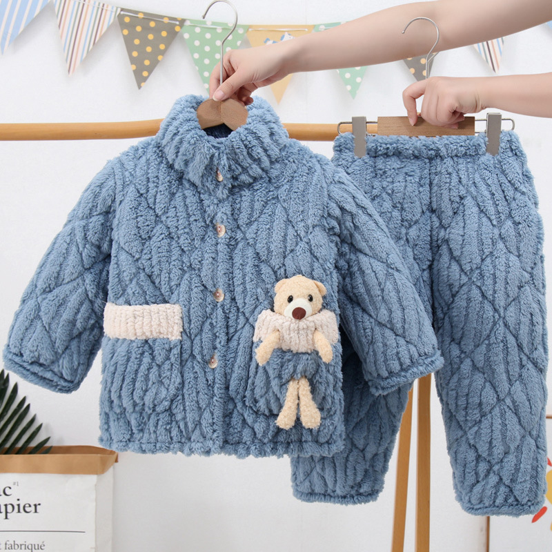 가을과 겨울 어린이 잠옷 플란넬 3 층 두께면 세트 아기 소년과 소녀 따뜻한 집 옷