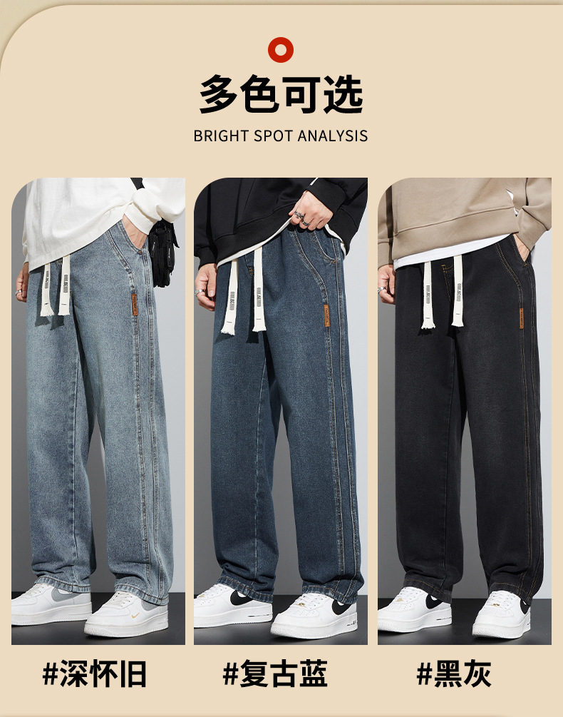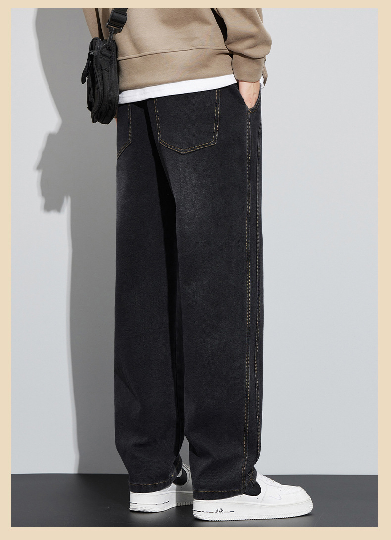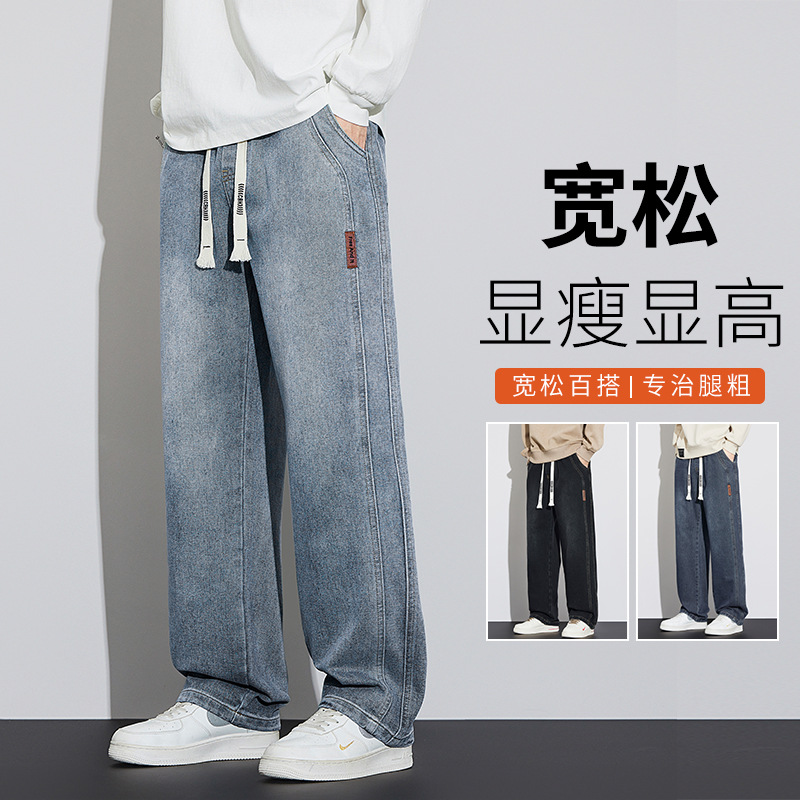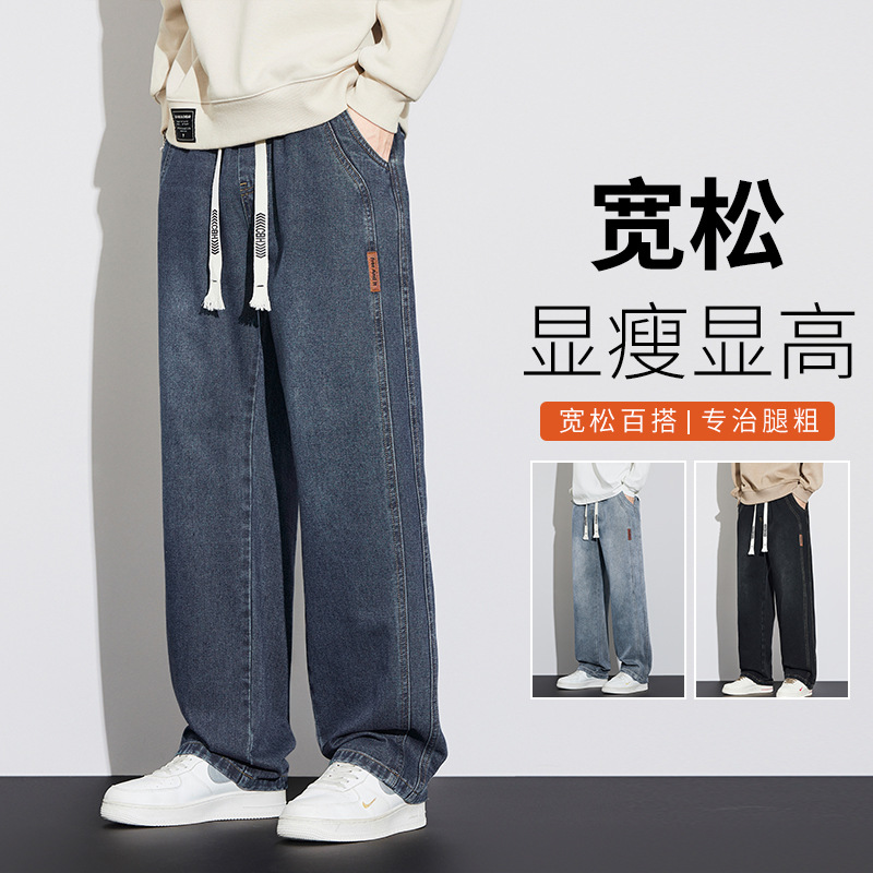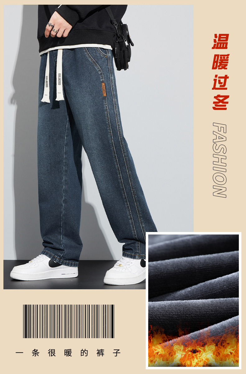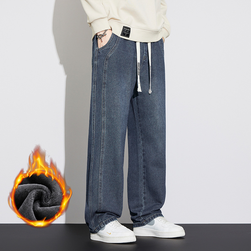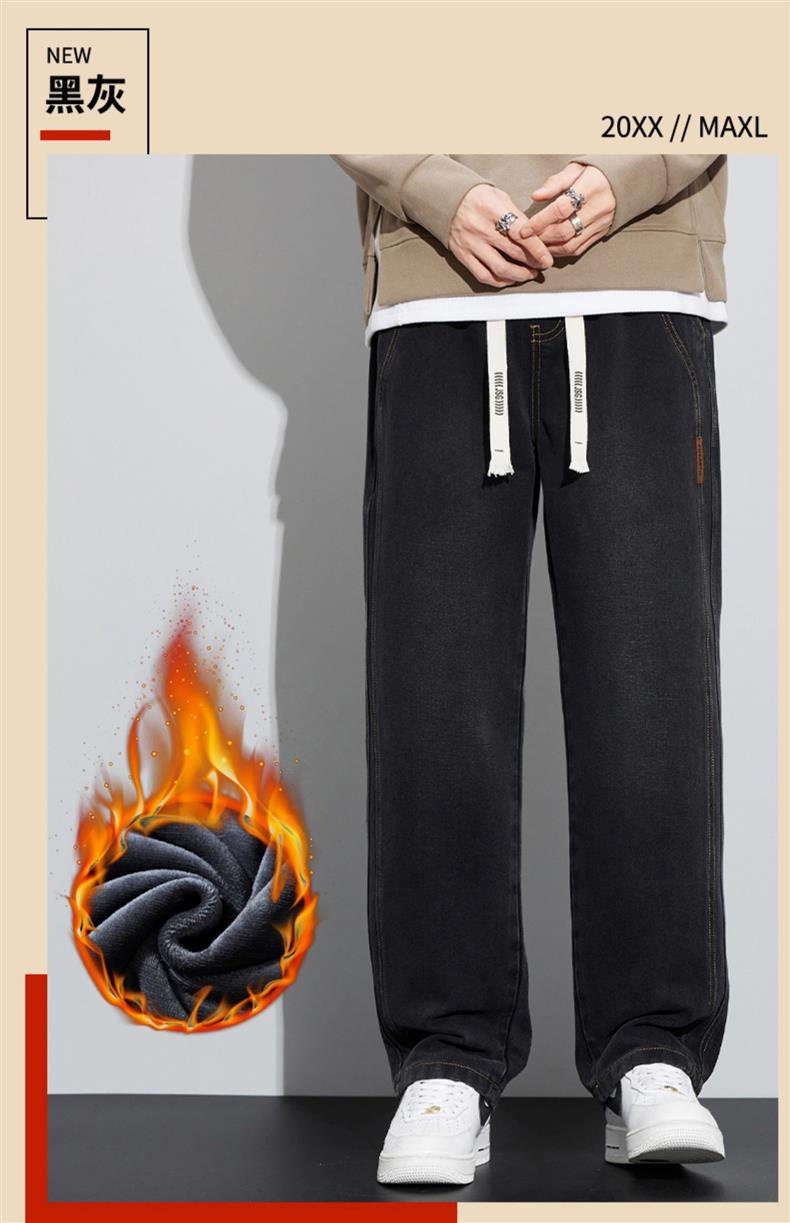 남자 기모 두꺼운 신탕 데님 바지 남자 2024 가을과 겨울 유행 느슨한 스트레이트 넓은 다리 캐주얼 바지스토어 가기