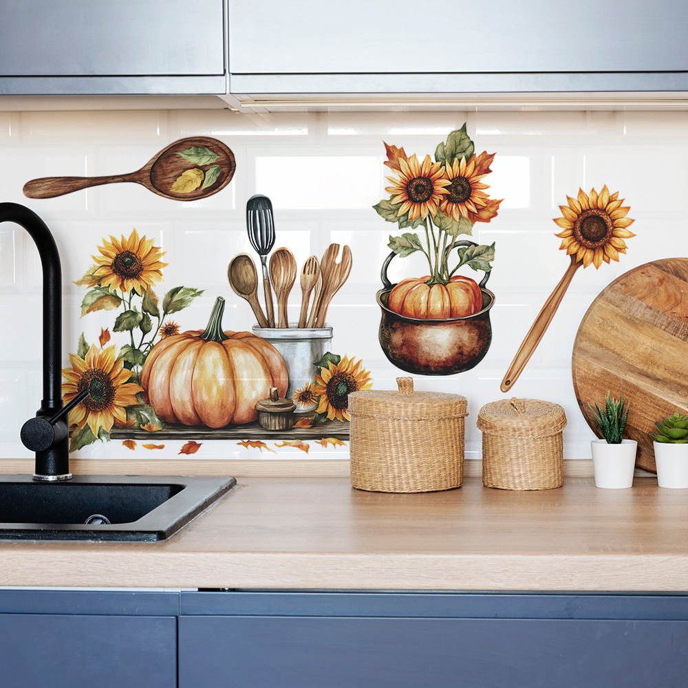 Fun-h13 대외 무역 그린 해바라기 주방 레스토랑 벽 미화 장식 벽 스티커 도매스토어 가기