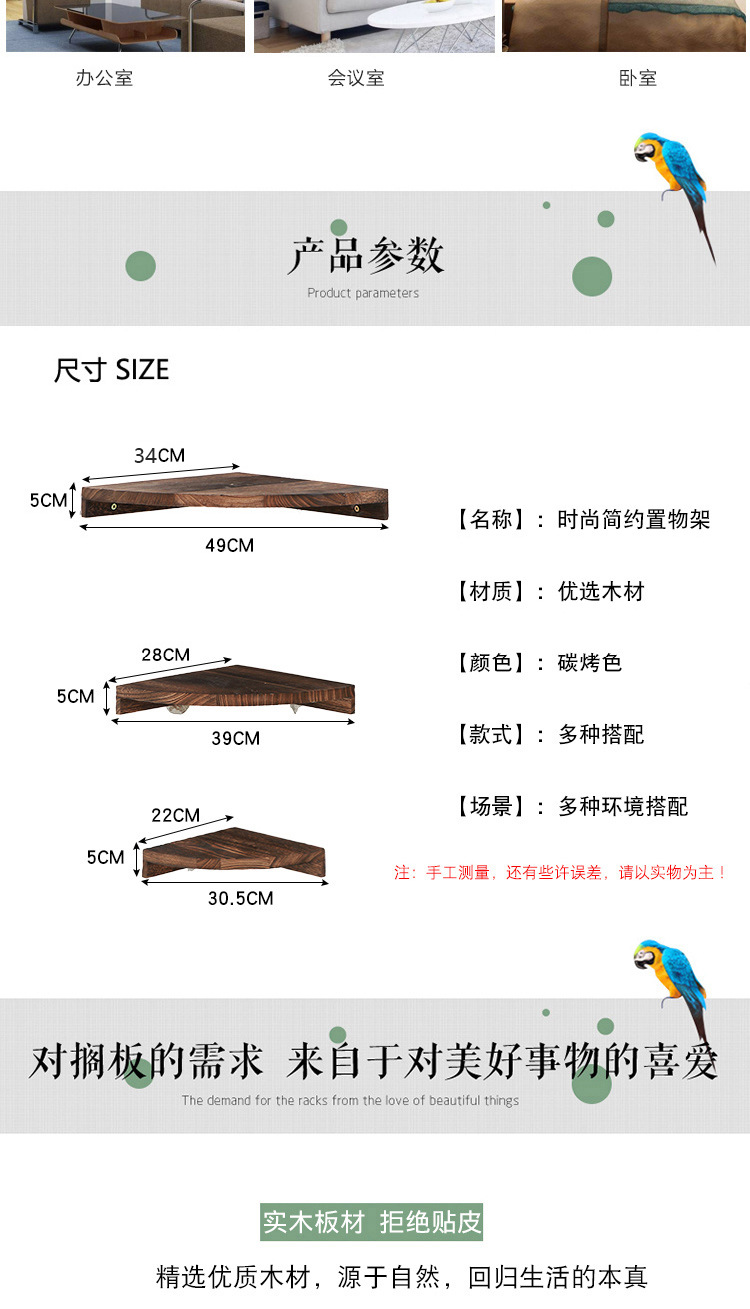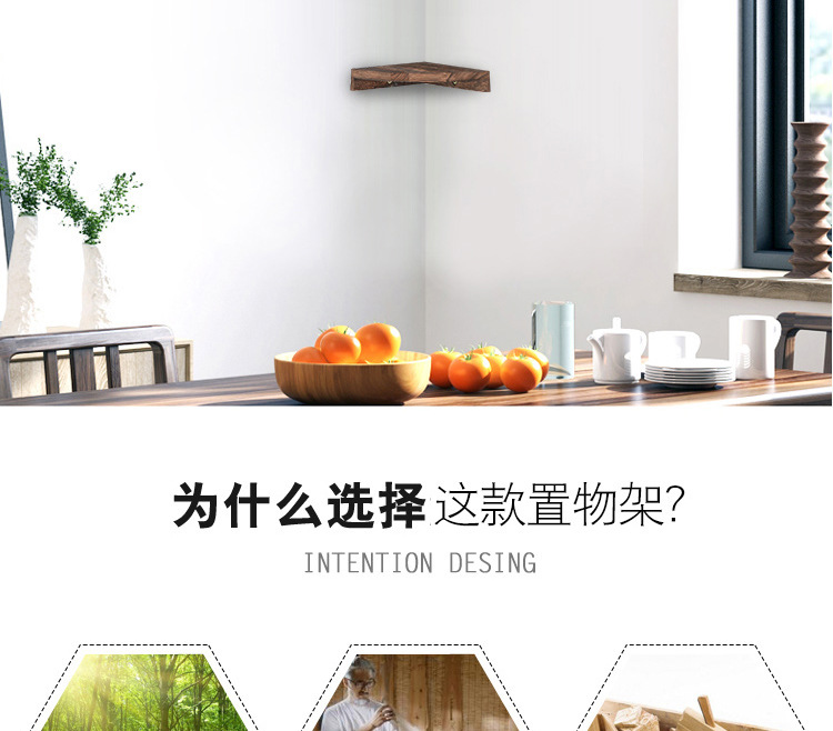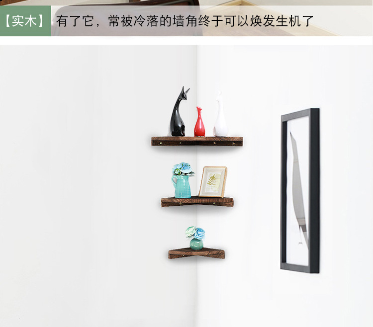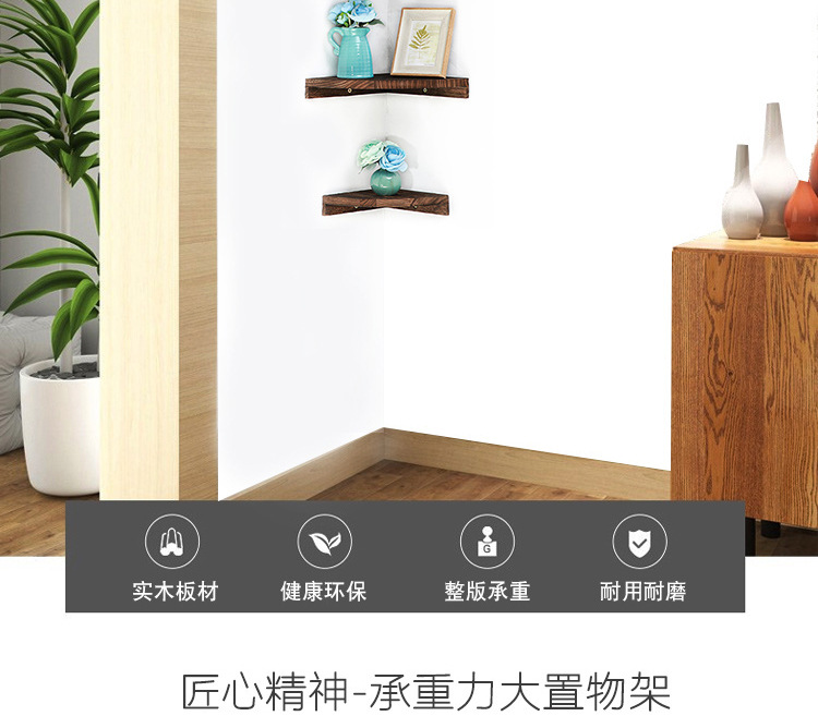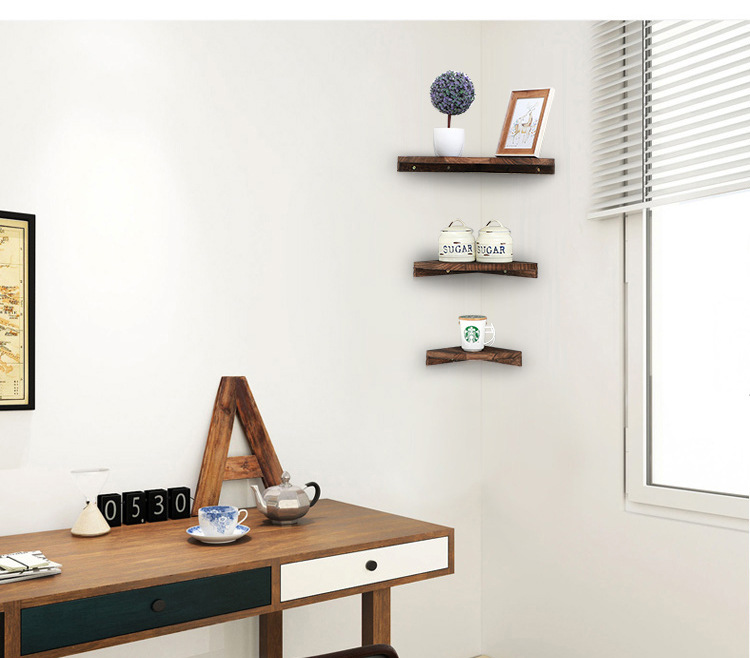 코너 삼각형 스토리지 랙 펀치없는 벽걸이 형 팬 모양의 책장 솔리드 우드 거실을위한 다층 파티션 코너 랙