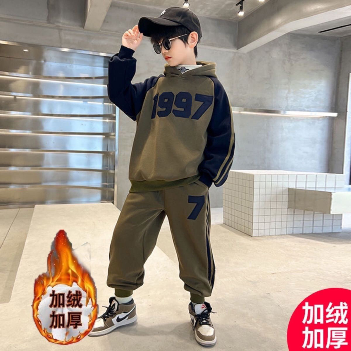 가을과 겨울 어린이 기모 두꺼운 스포츠 세트 중 큰 어린이 패션 유행 후드 땀 바지 캐주얼 투피스 세트