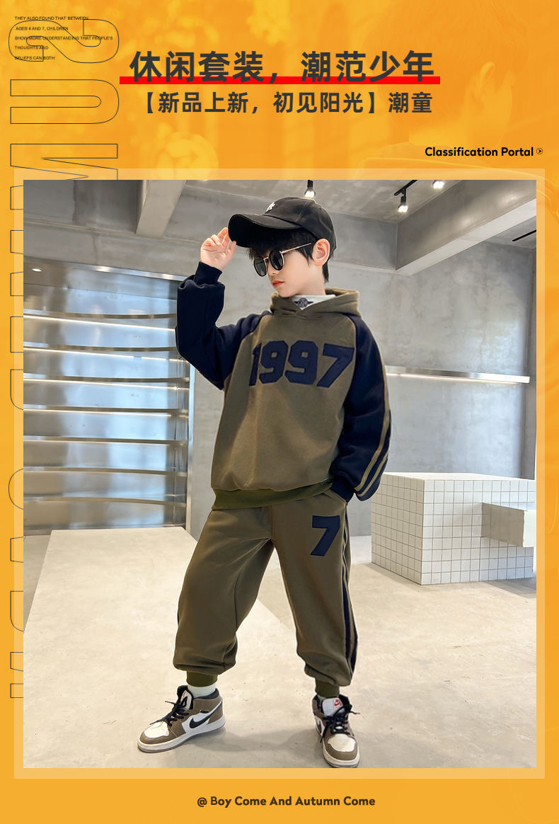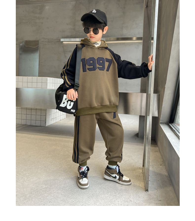 가을과 겨울 어린이 기모 두꺼운 스포츠 세트 중 큰 어린이 패션 유행 후드 땀 바지 캐주얼 투피스 세트스토어 가기