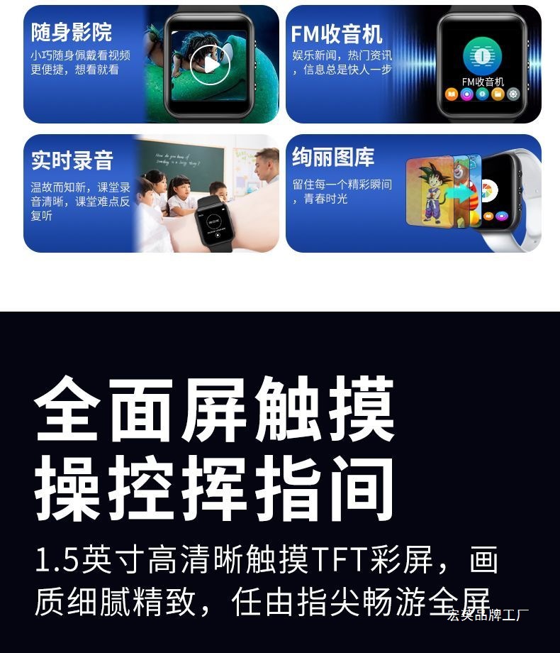 전체 화면 터치 새로운 블루투스 시계 mp3 학생 특수 mp4 독서 소설 디지털 음악 플레이어 카드