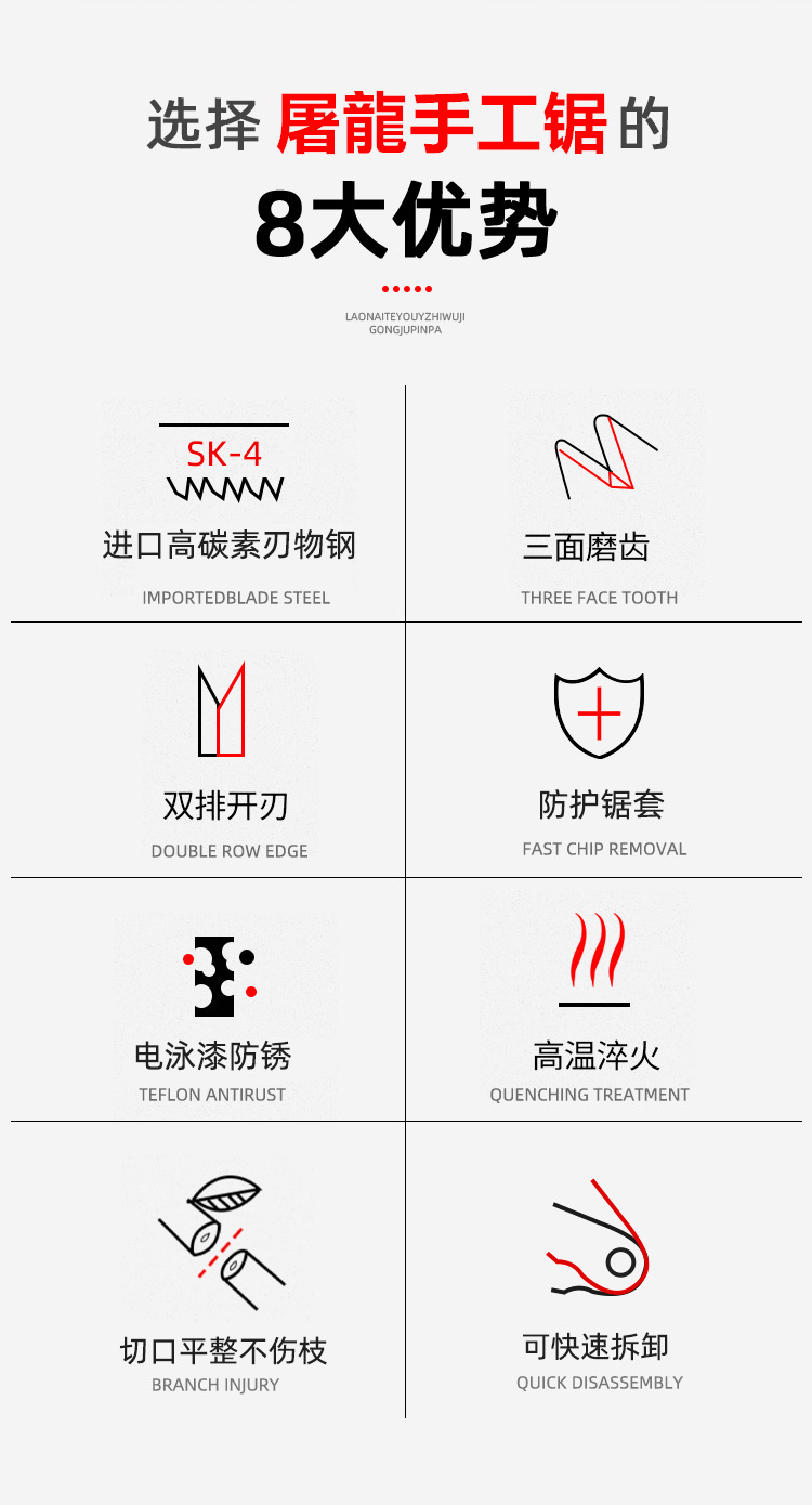 • Haoyue Saw-Silver 350mm에는 톱 커버 + 파일 + 장갑이 함께 제공됩니다.