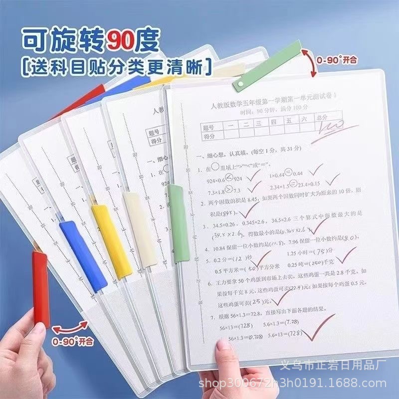 A3A4双拉杆试卷夹透明彩色学生收纳文件资料档案分类侧开旋转