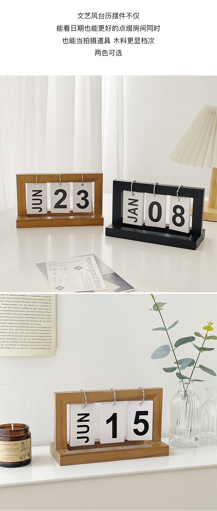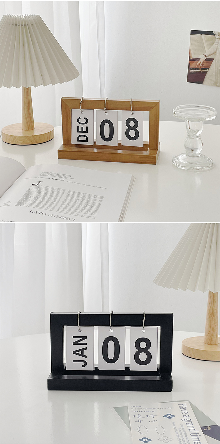 2024 창조적 인 테이블 가구 데스크탑 나무 플립 달력 장식품 현관 사진 소품 작은 장식품 촬영