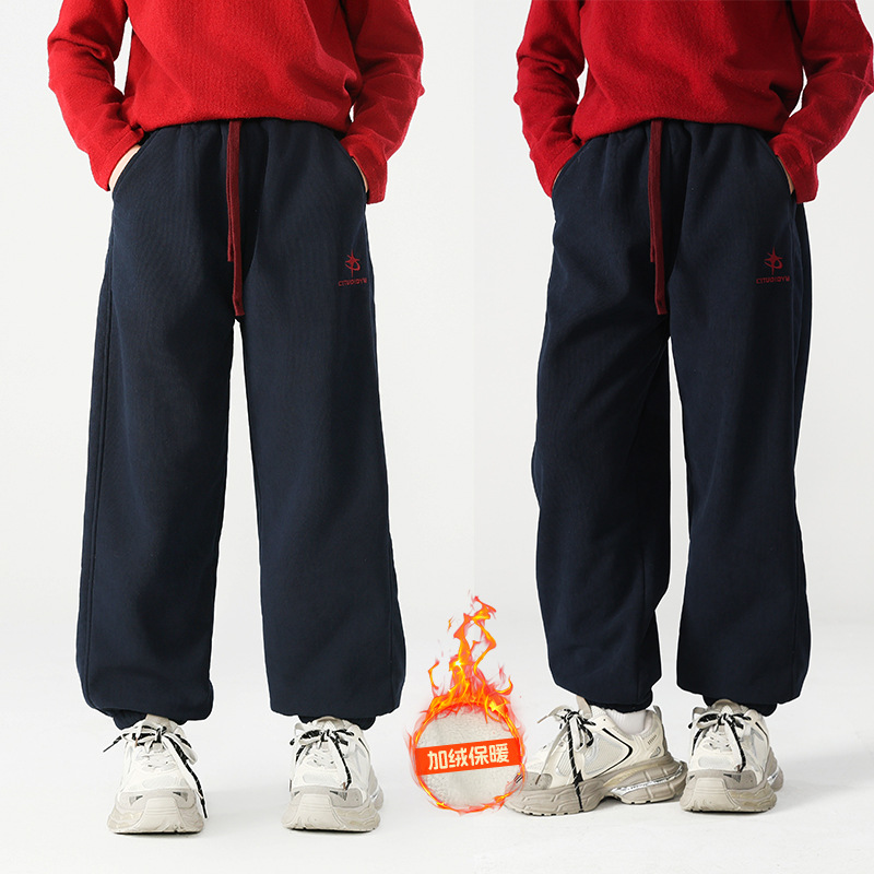 소년 소녀 기모 두꺼운 스포츠 바지 큰 어린이 플러스 사이즈 느슨한 캐주얼 올 매치 운동복 중학교 바지스토어 가기