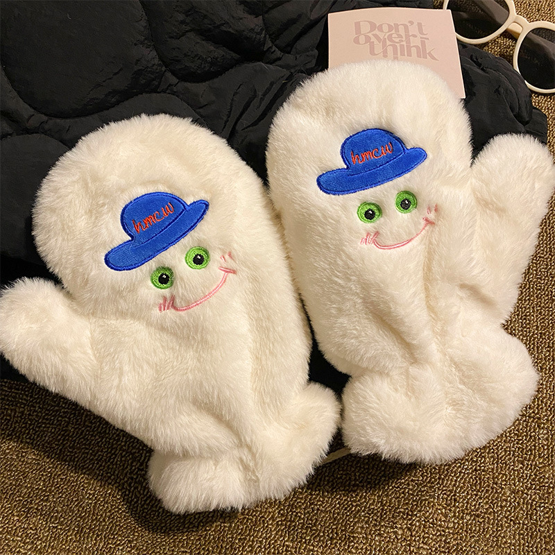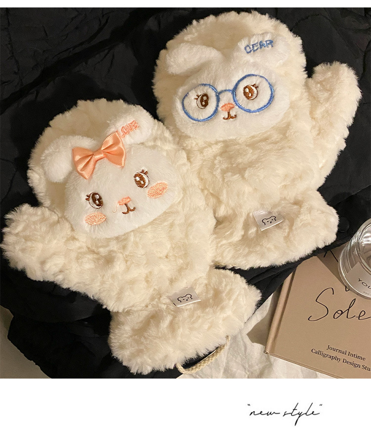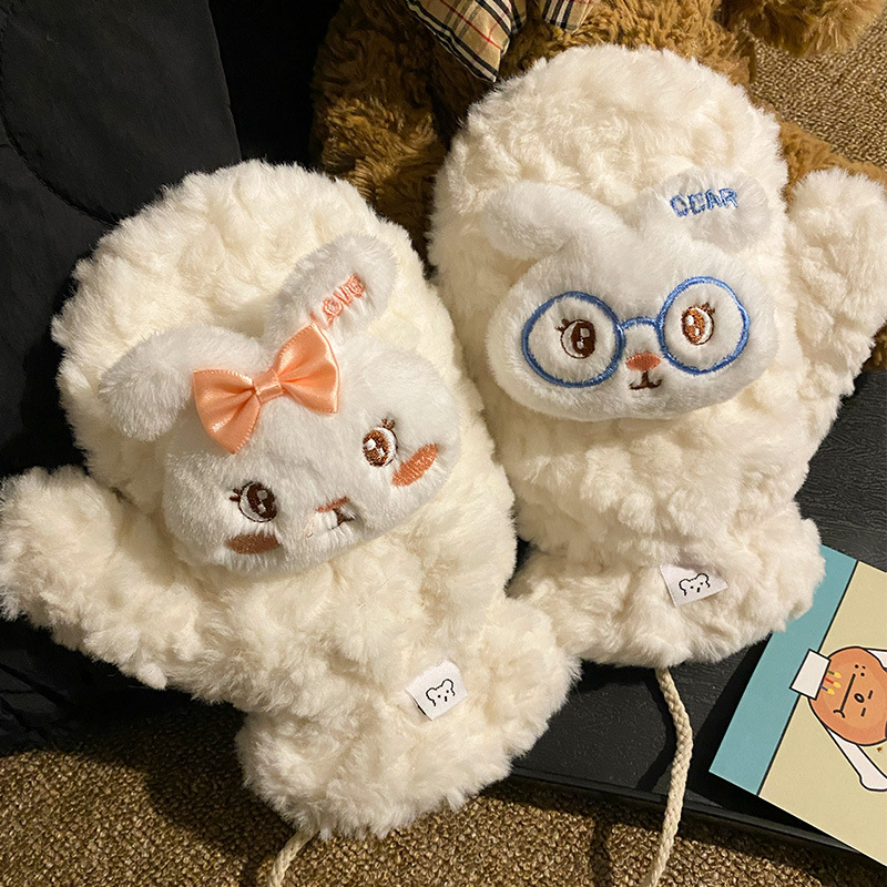 귀여운 토끼 봉제 장갑 여성용 겨울 두꺼운 기모 따뜻한 사이클링 방풍 방수 목