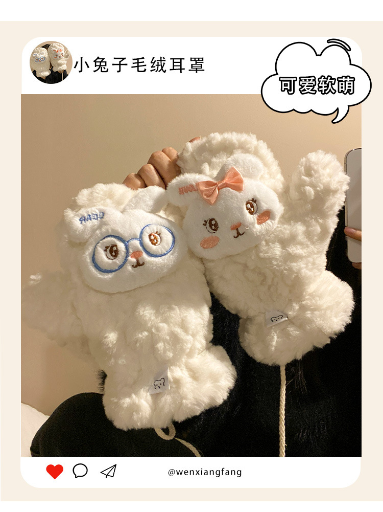 귀여운 토끼 봉제 장갑 여성용 겨울 두꺼운 기모 따뜻한 사이클링 방풍 방수 목스토어 가기