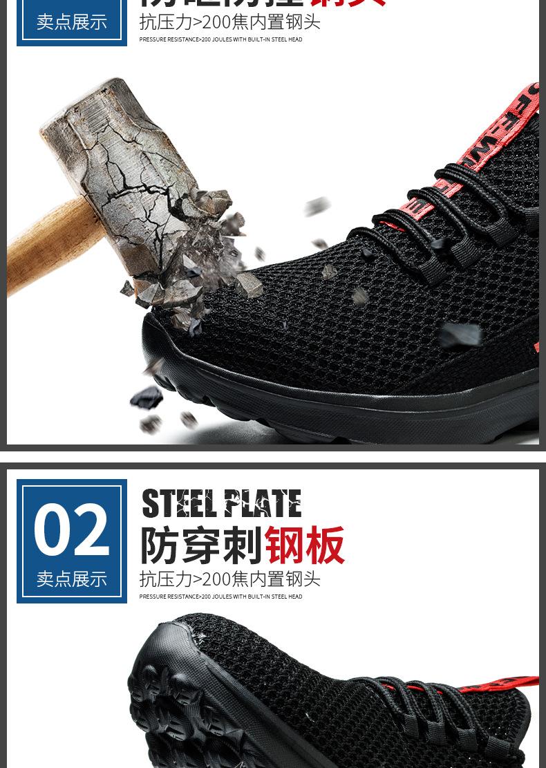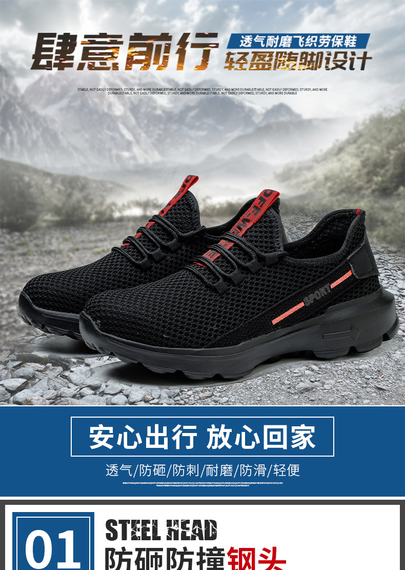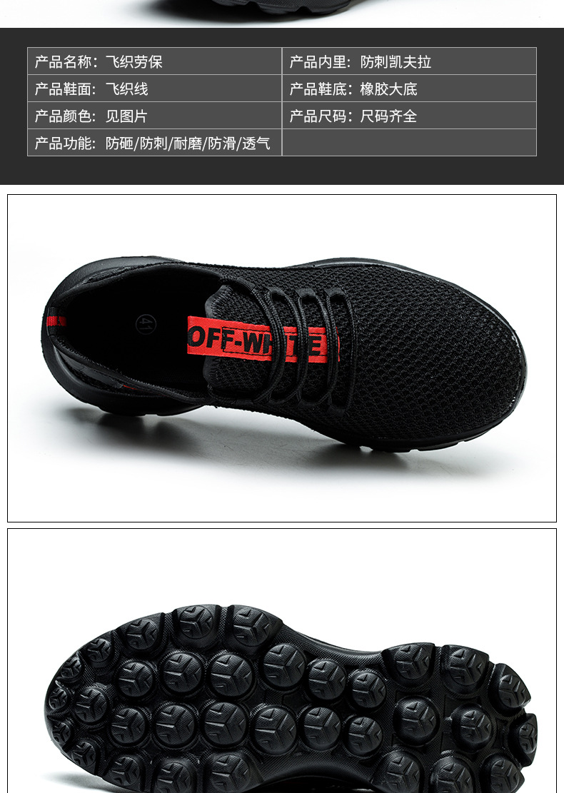 플라잉 짠 노동 보호 신발 스매싱 방지 방지 냄새 방지 안전 신발 통기성 경량 미끄럼 방지 마모 방지 스틸 발가락 건설 현장 신발스토어 가기