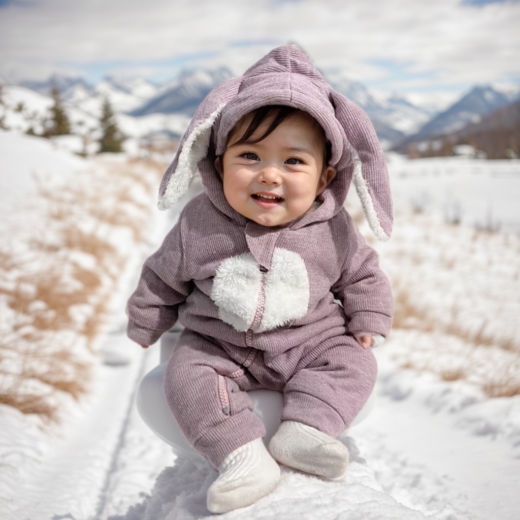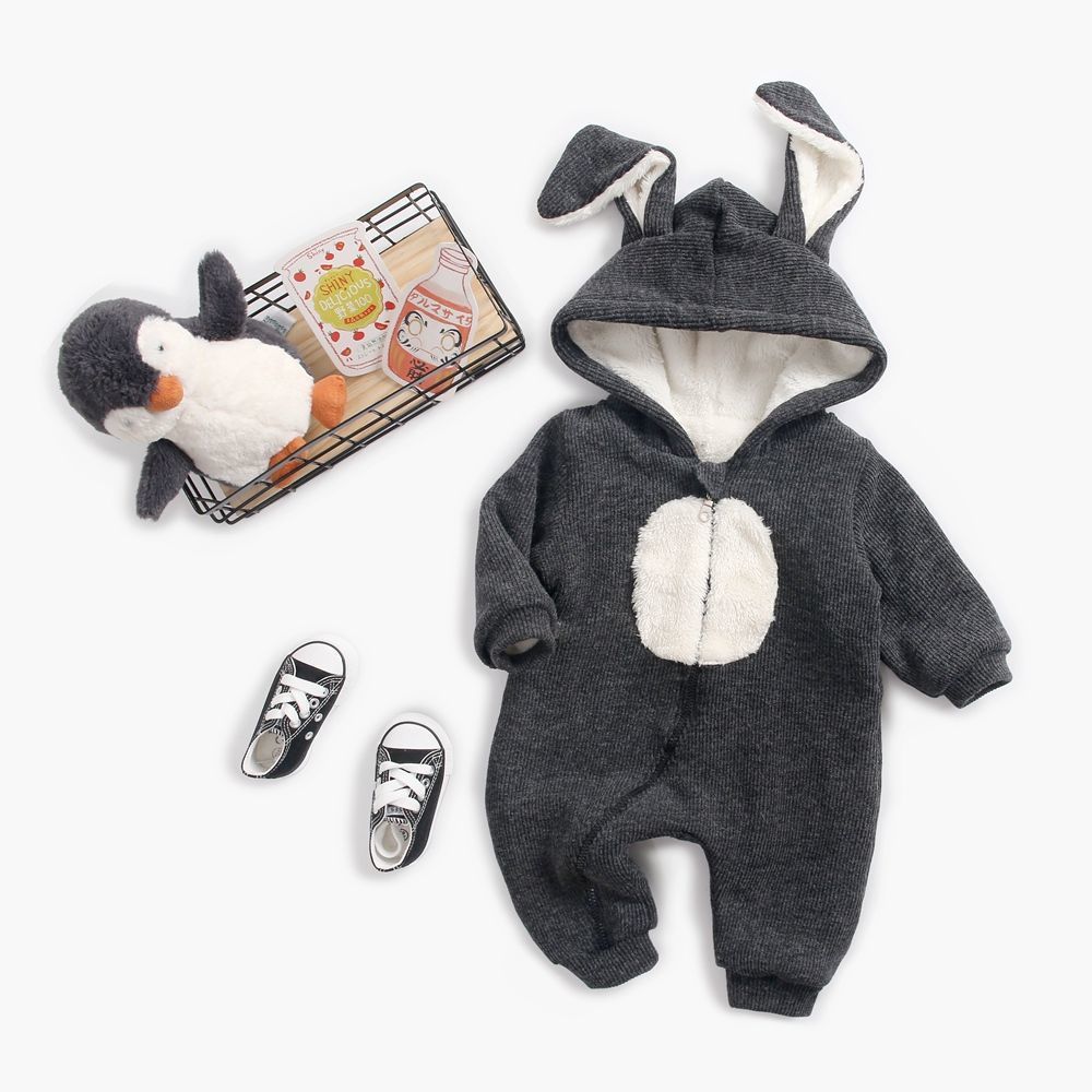 가을과 겨울 아기 후드 점프 수트 아기 점프 수트 만화 스타일 어린이 크롤링 옷 토끼스토어 가기