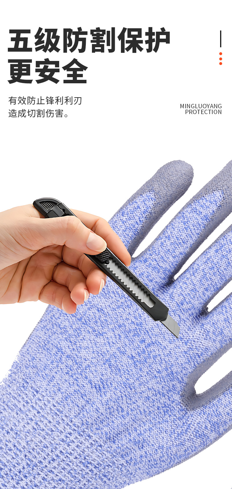 • 파란색과 흰색 레벨 5 절단 방지 회색 PU 장갑