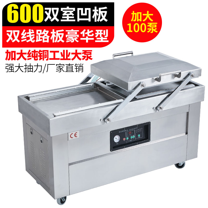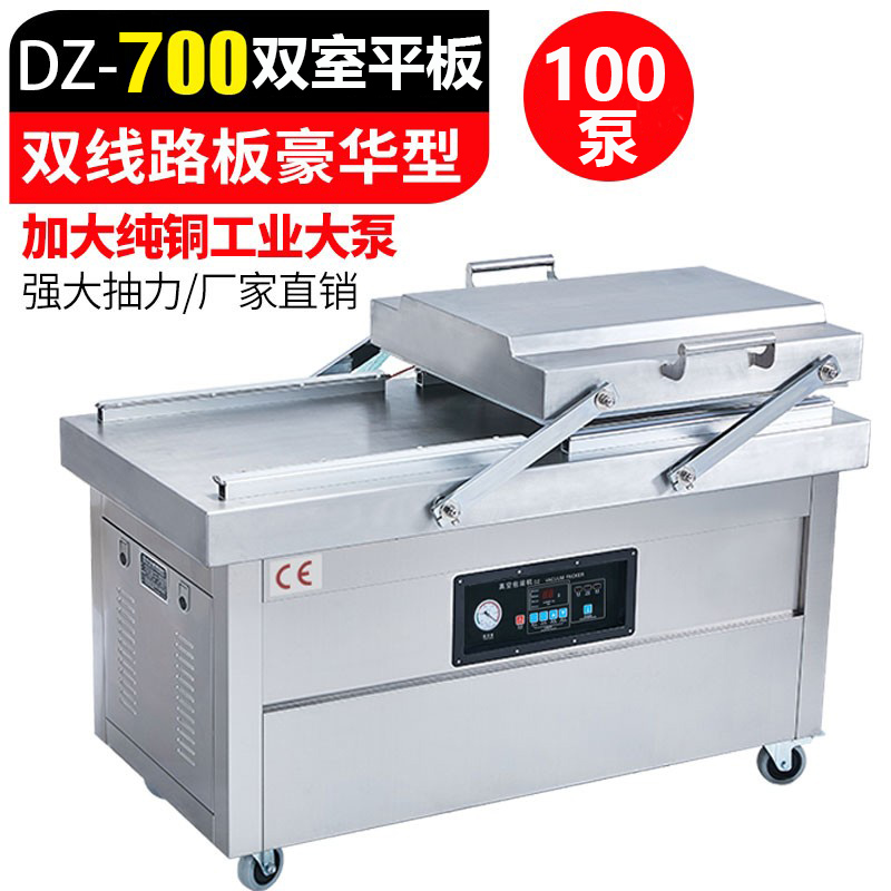 완전 자동 이중 챔버 진공 기계 식품 포장 기계 대형 상업용 조리 식품 건조 및 습식 대피 신선한 보관 포장 및 밀봉 기계스토어 가기