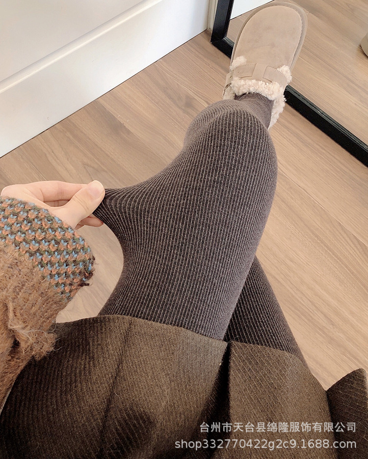 다크 브라운 팬티 스타킹 여성의 가을과 겨울 두껍게 기모 중간 다크 브라운 레깅스 슬림 핏 외부 착용 스모키 그레이 풋 스테핑 양말
