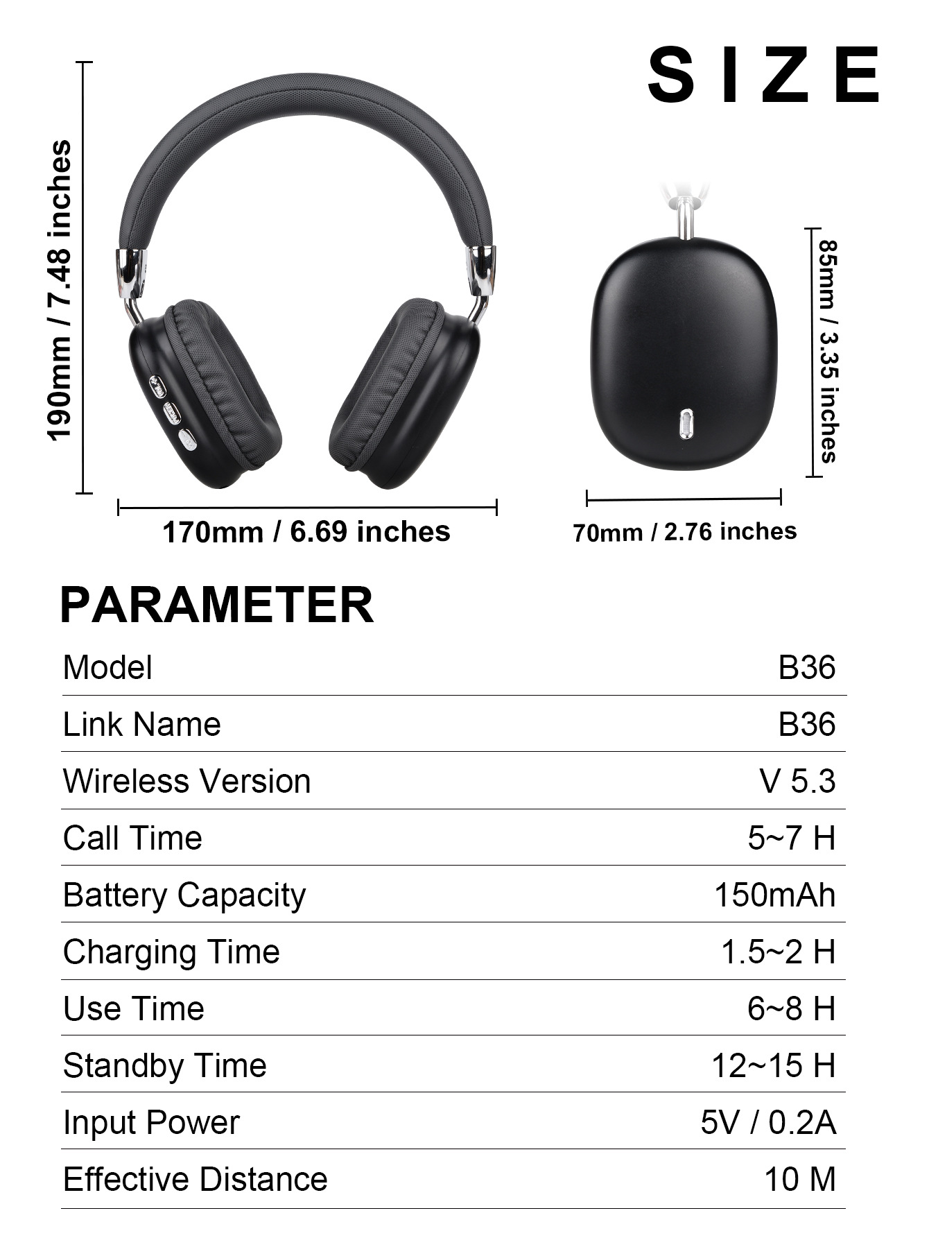 엄선된 B36 크로스보더 헤드셋, 완벽한 호환성, 긴 배터리 수명, 낮은 지연, 고화질 통화, 무선 이어폰스토어 가기