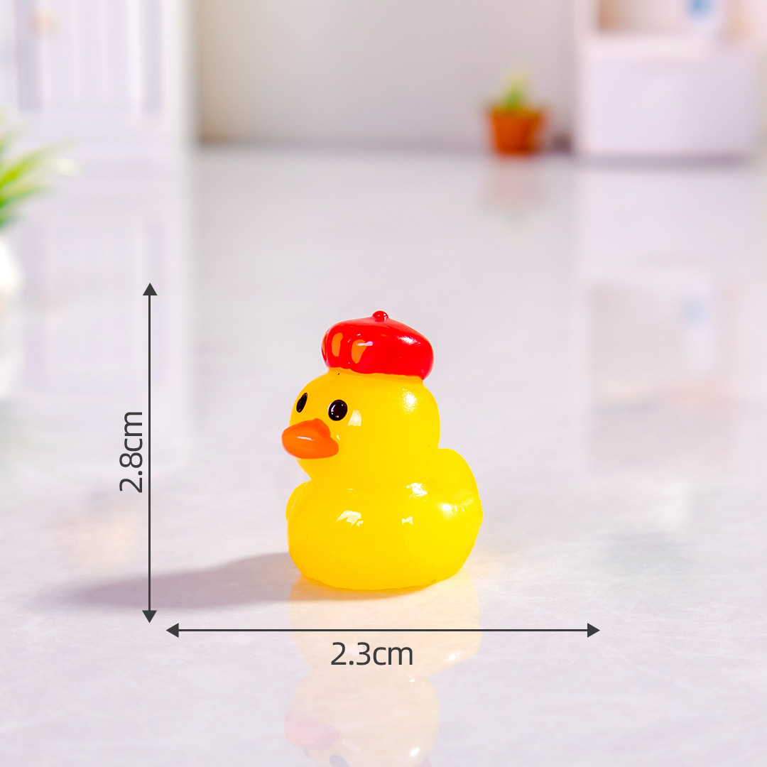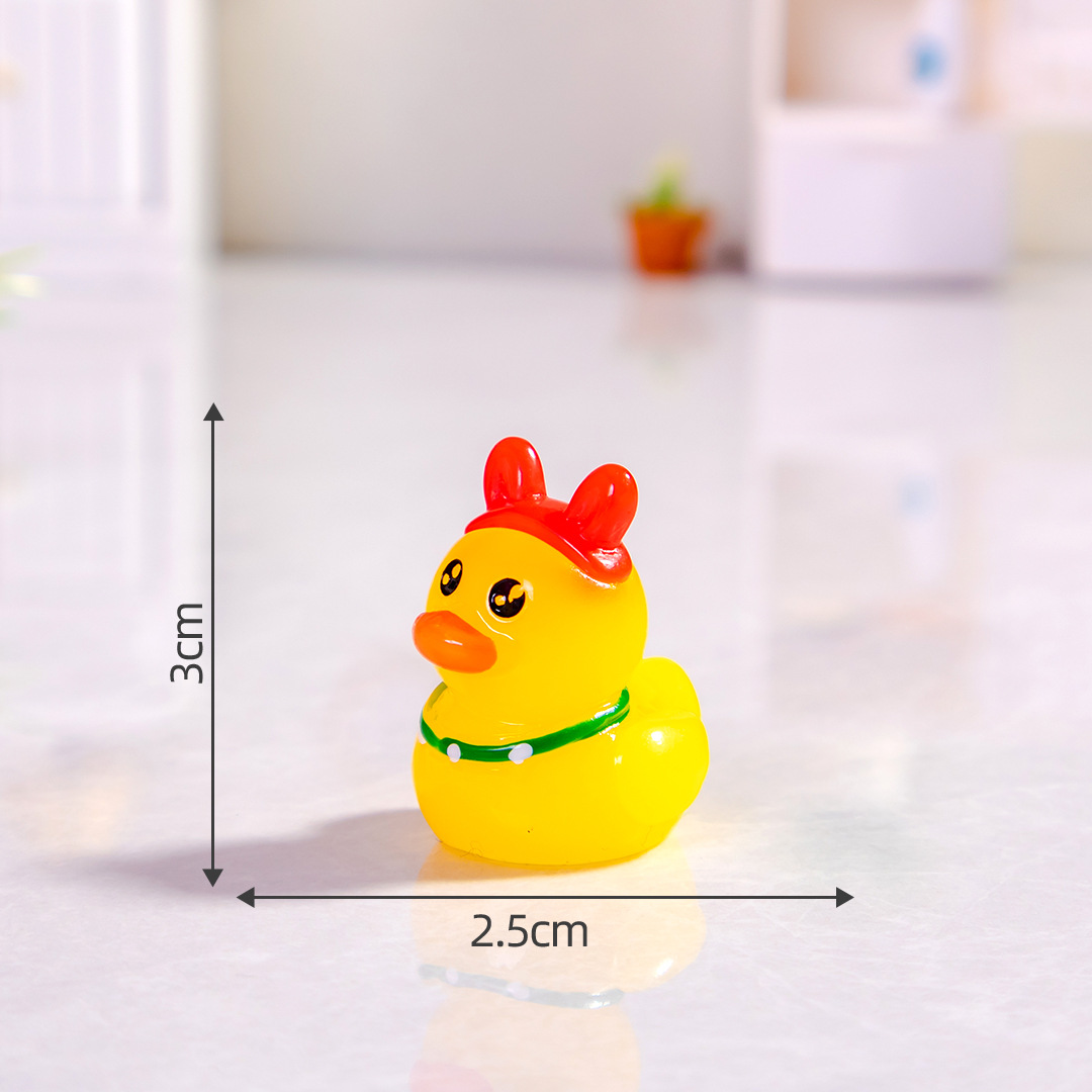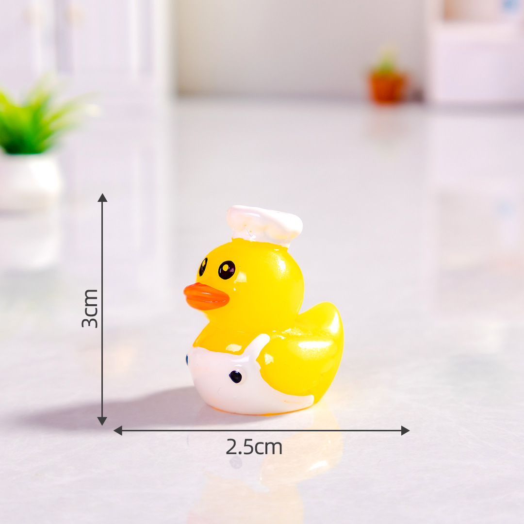 귀여운 만화 노란 오리 인형 장식품 마이크로 풍경 창조적 인 빛나는 오리 diy 보석 수지 액세서리 도매