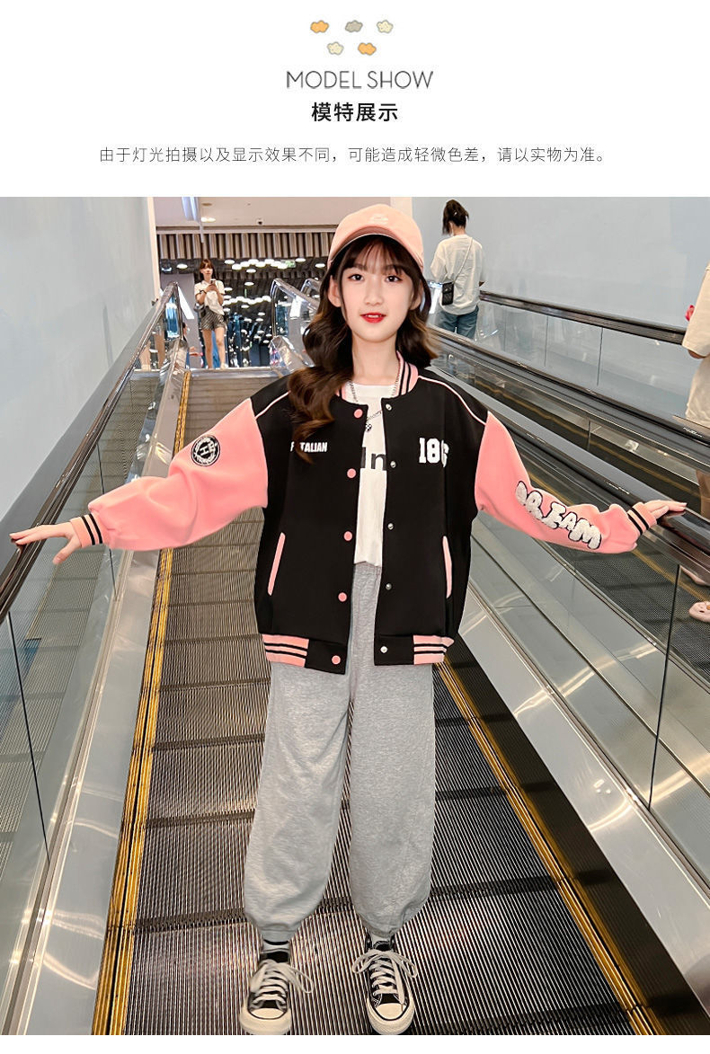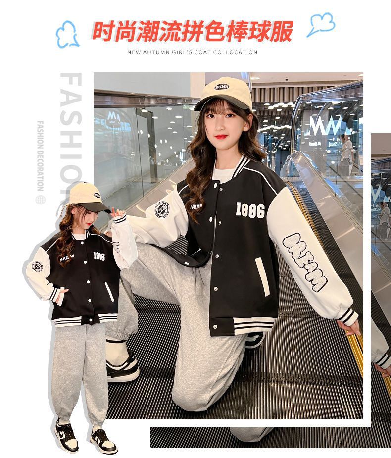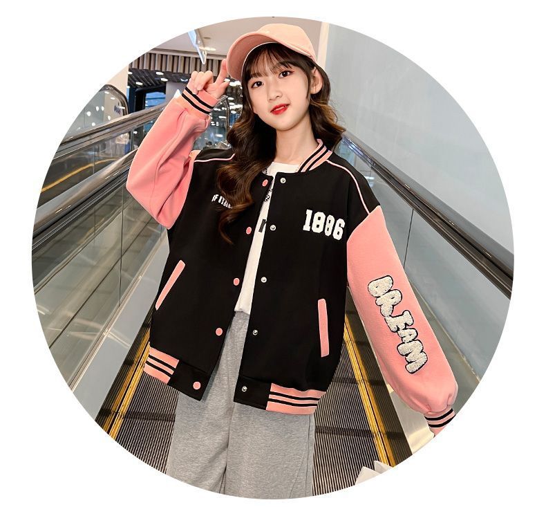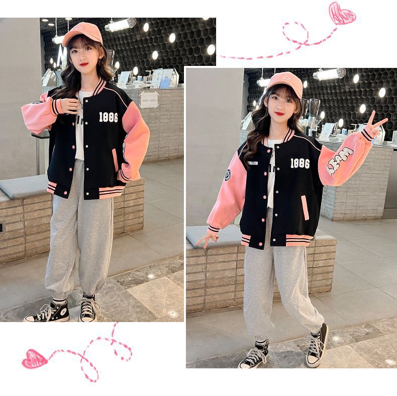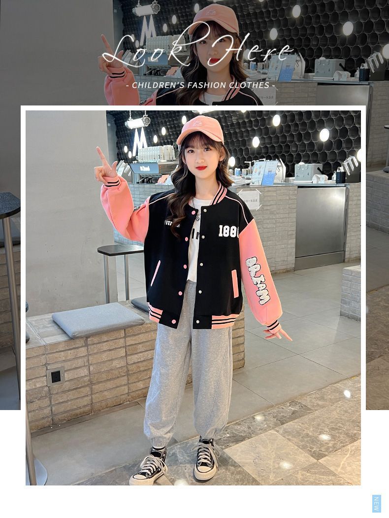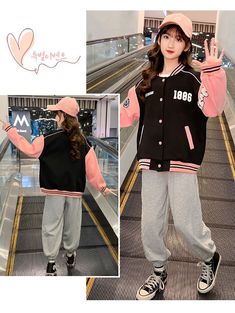 소녀 봄과 가을 새로운 패션 야구 세트 재킷 카디건 초등 및 중등 학교 학생 캐주얼 스포츠 스타일 스웨터 재킷 트렌디스토어 가기
