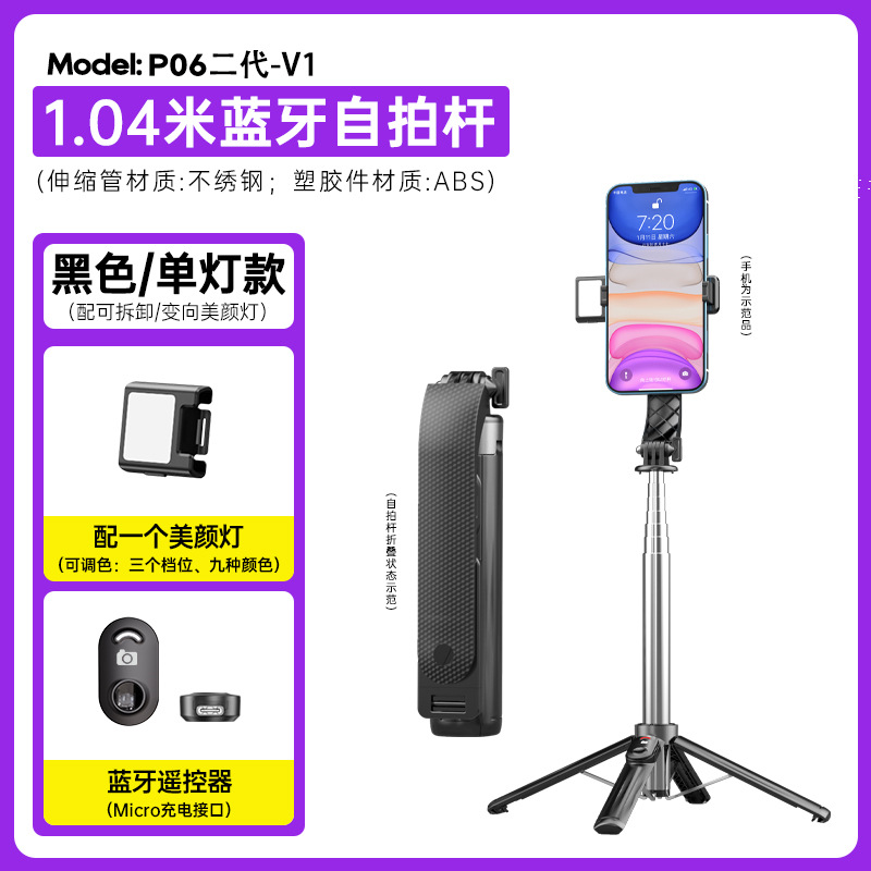 • P06 2세대-V1/휴대폰 셀카봉/블랙/싱글라이트/팝업 포함
