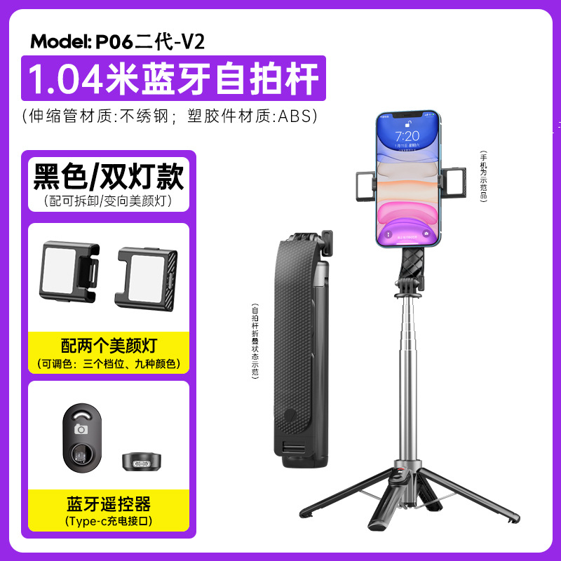 • P06 2세대-V2/휴대폰 셀카봉/블랙/듀얼라이트/팝업 포함