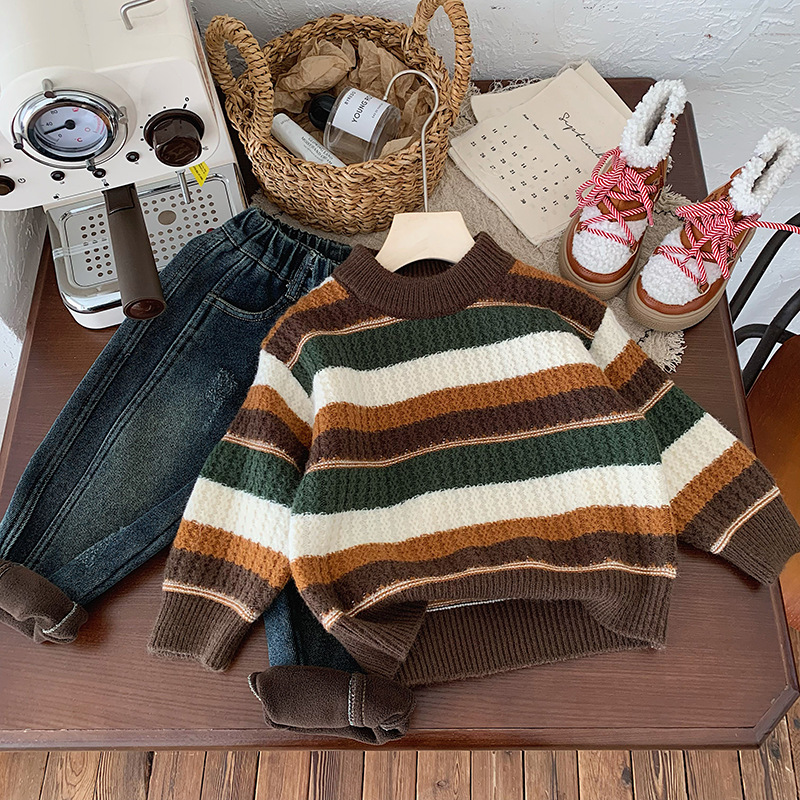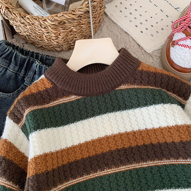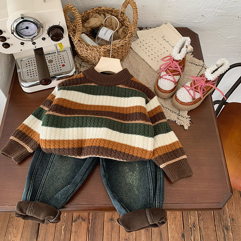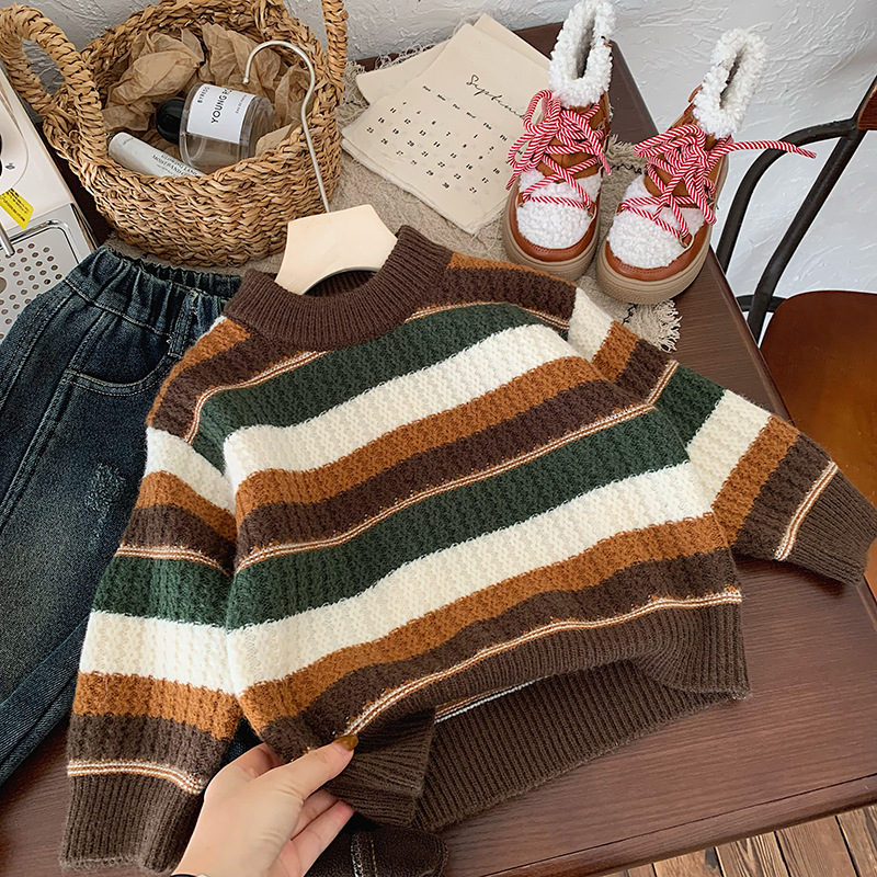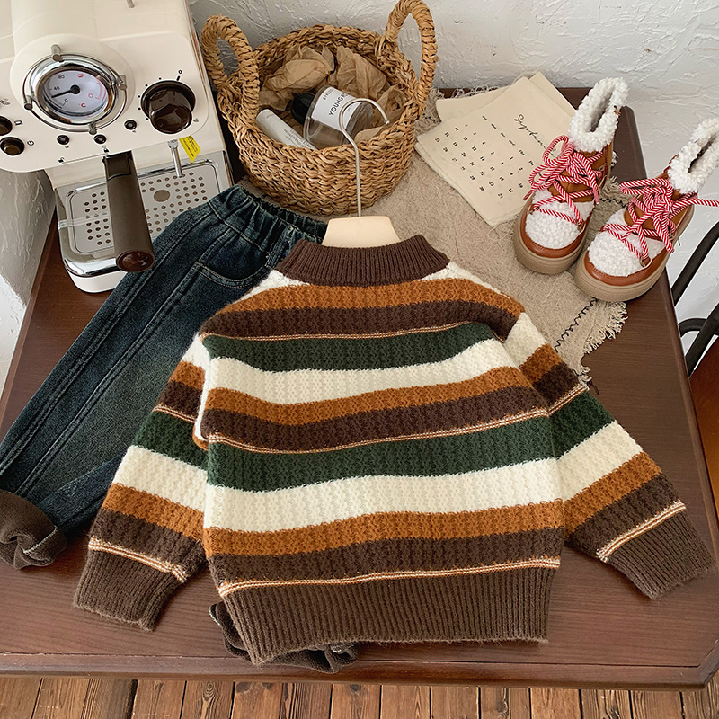 목원 두꺼운 스웨터 어린이 겨울 한국 스타일 의류 남아 다용도 따뜻한 니트 상의 호주 직물 아동복