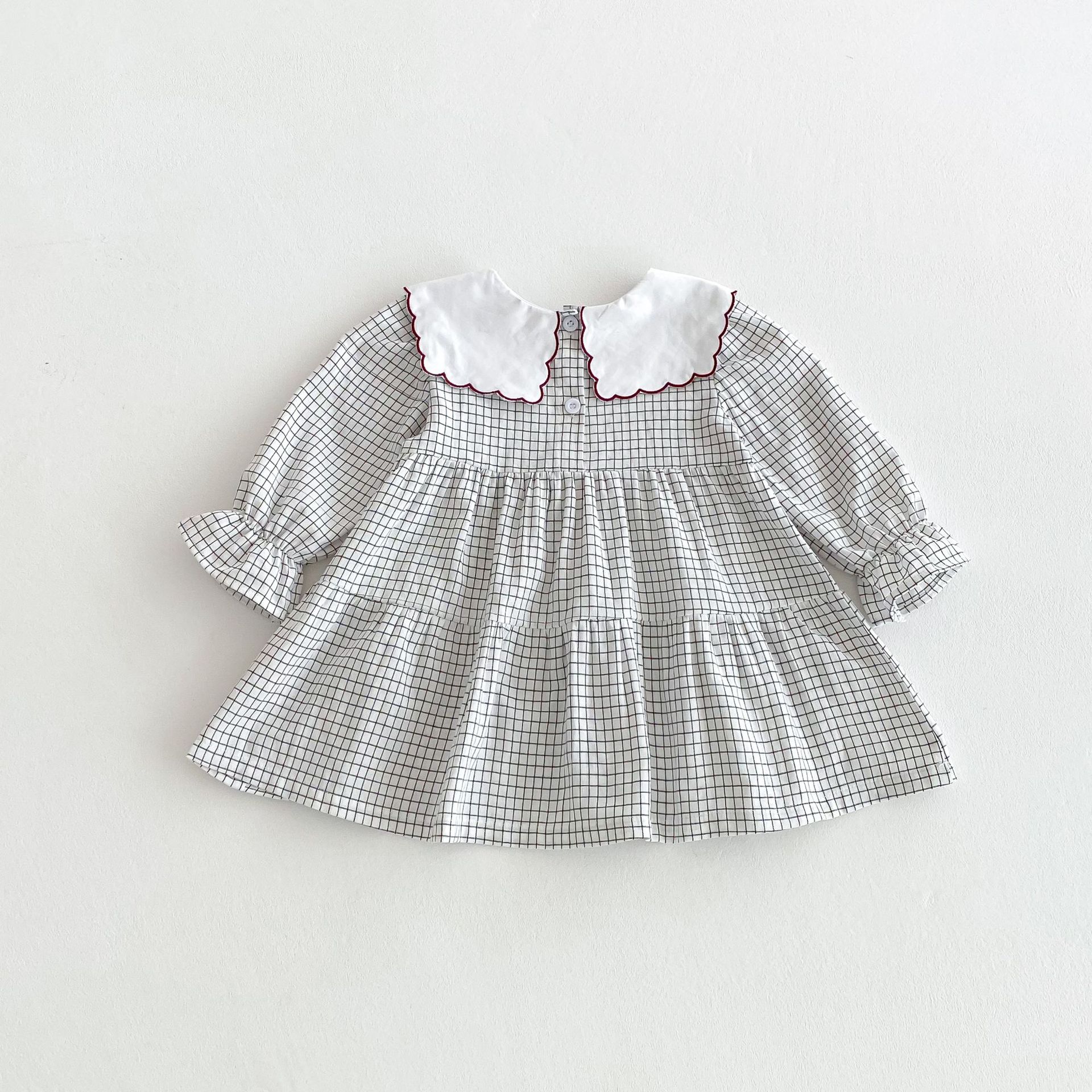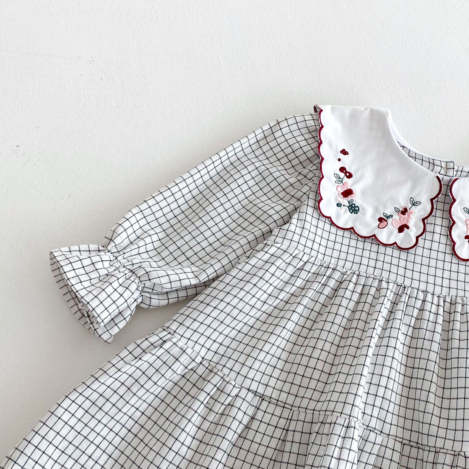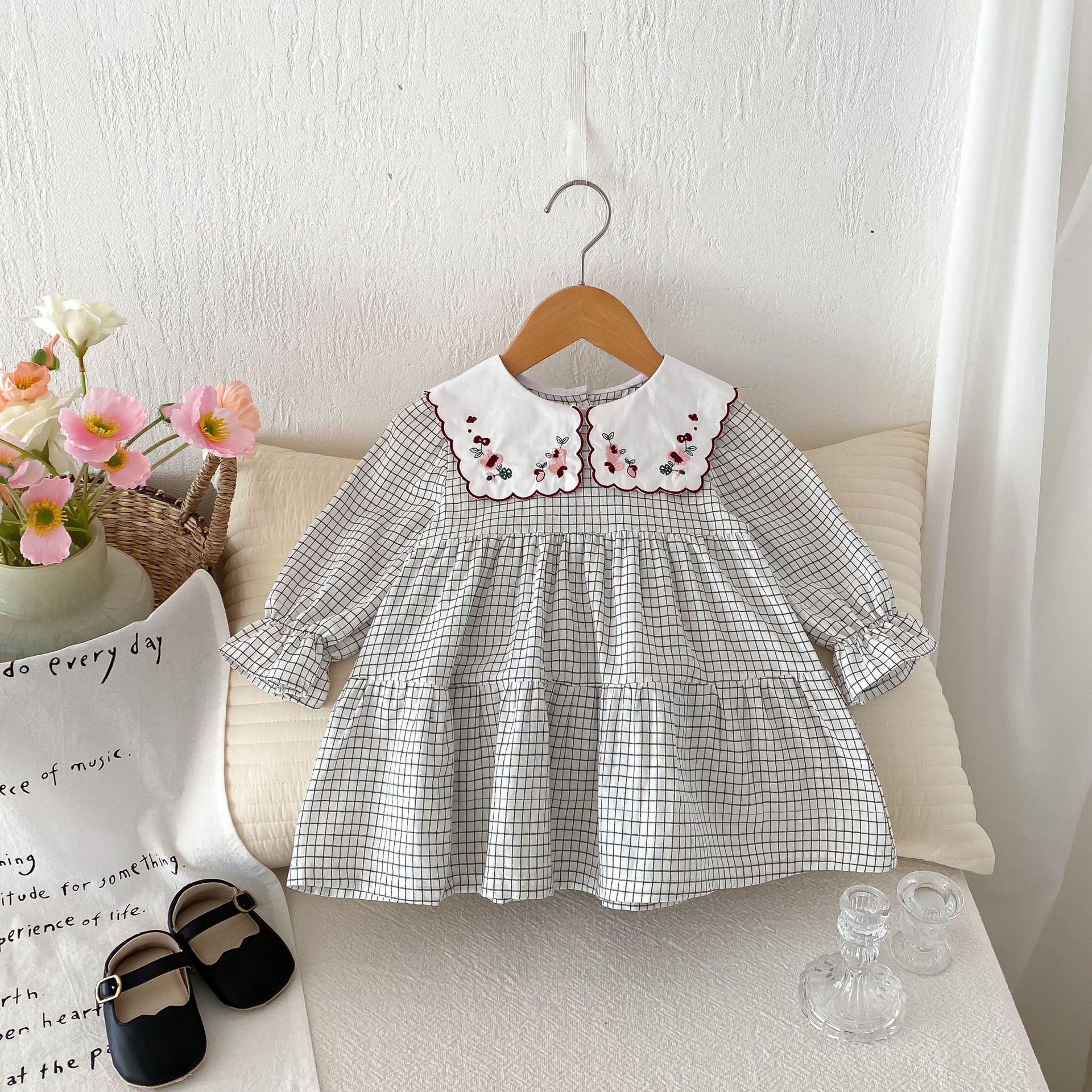 2025 새로운 봄 소녀 원피스 인형 목걸이 귀여운 격자 무늬 꽃 자수 치마 어린이 공주 원피스스토어 가기