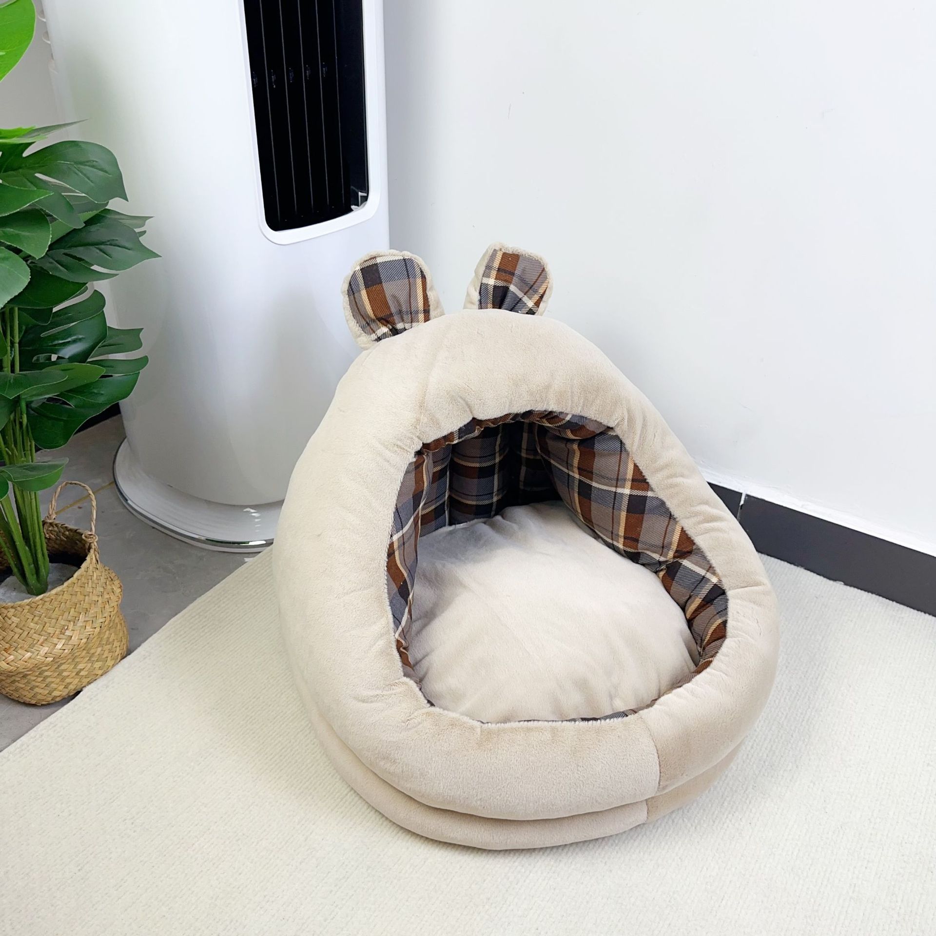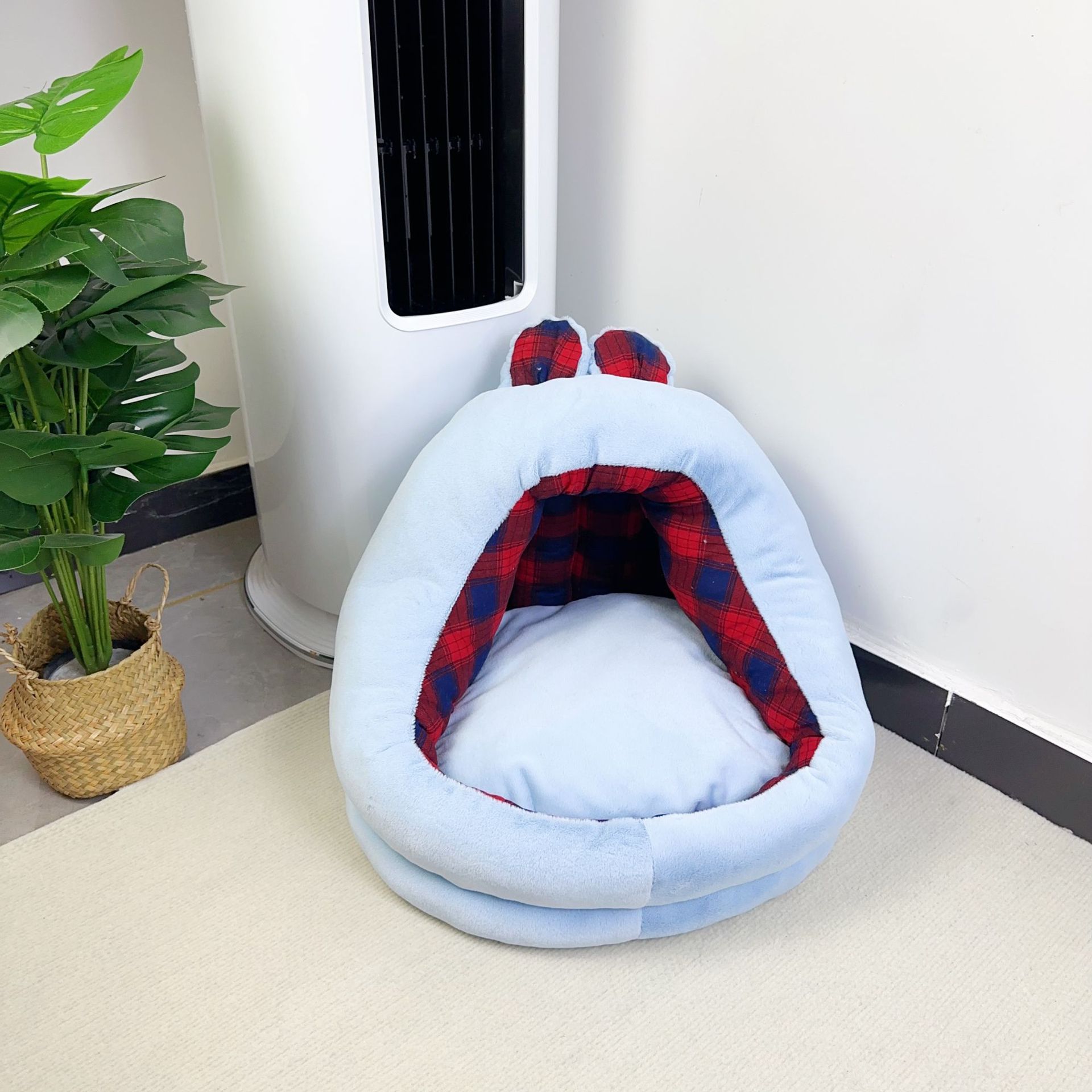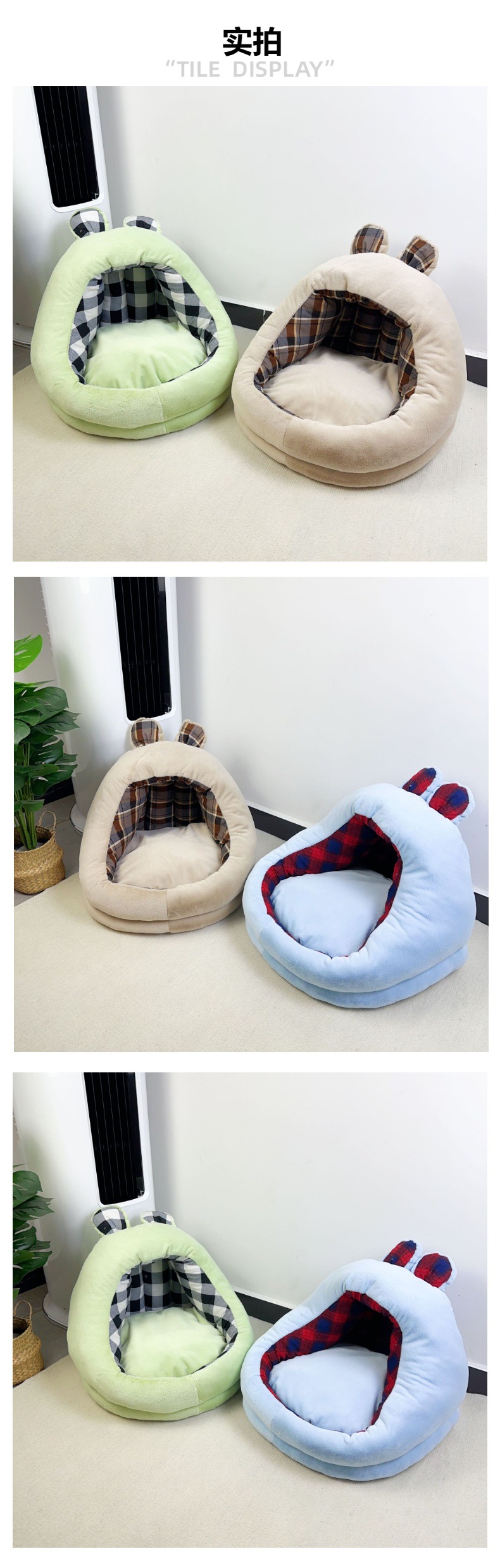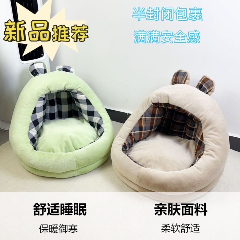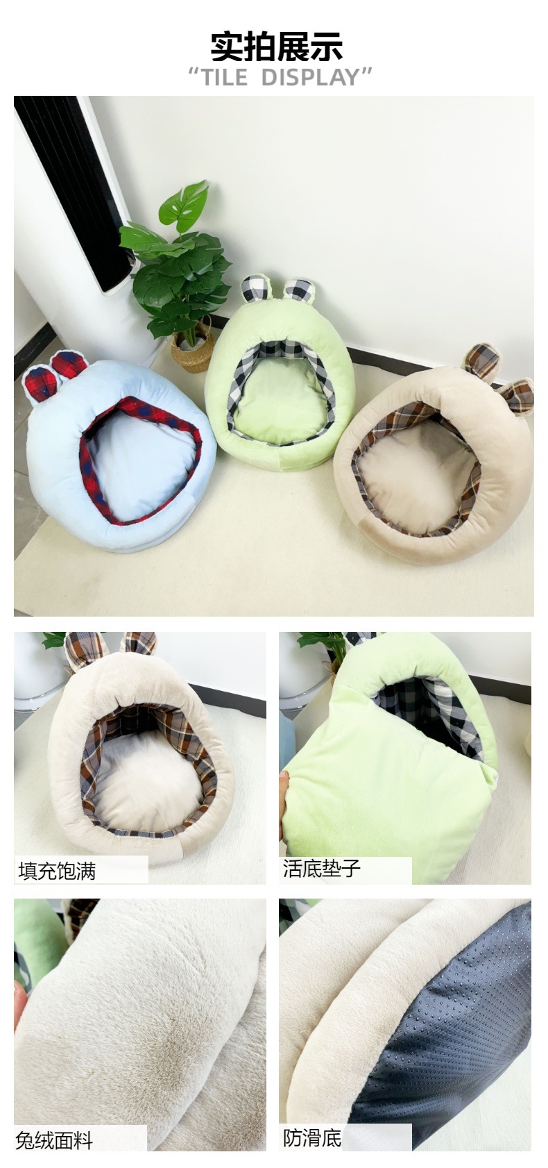 겨울 고양이 둥지 따뜻한 반 닫힌 두꺼운 모피 애완 동물 집 둥지 작은 개 소파 둥지 개 쿠션