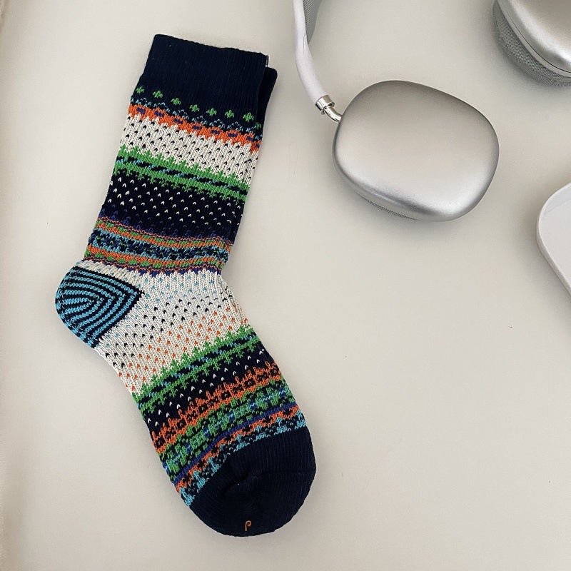 페어 아일랜드 커플 I 미국 빛 럭셔리 레트로 민족 스타일 두꺼운 라인 카지 스트리트 스타일 ns 중간 튜브 스택 양말 어린이스토어 가기