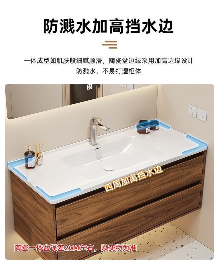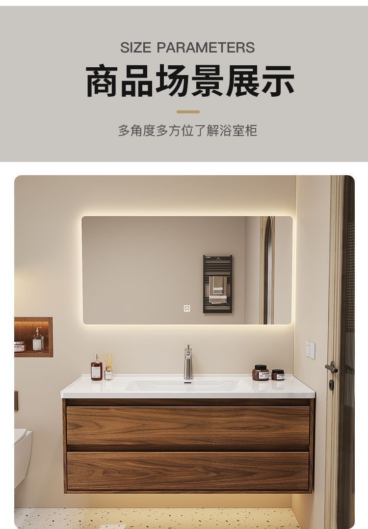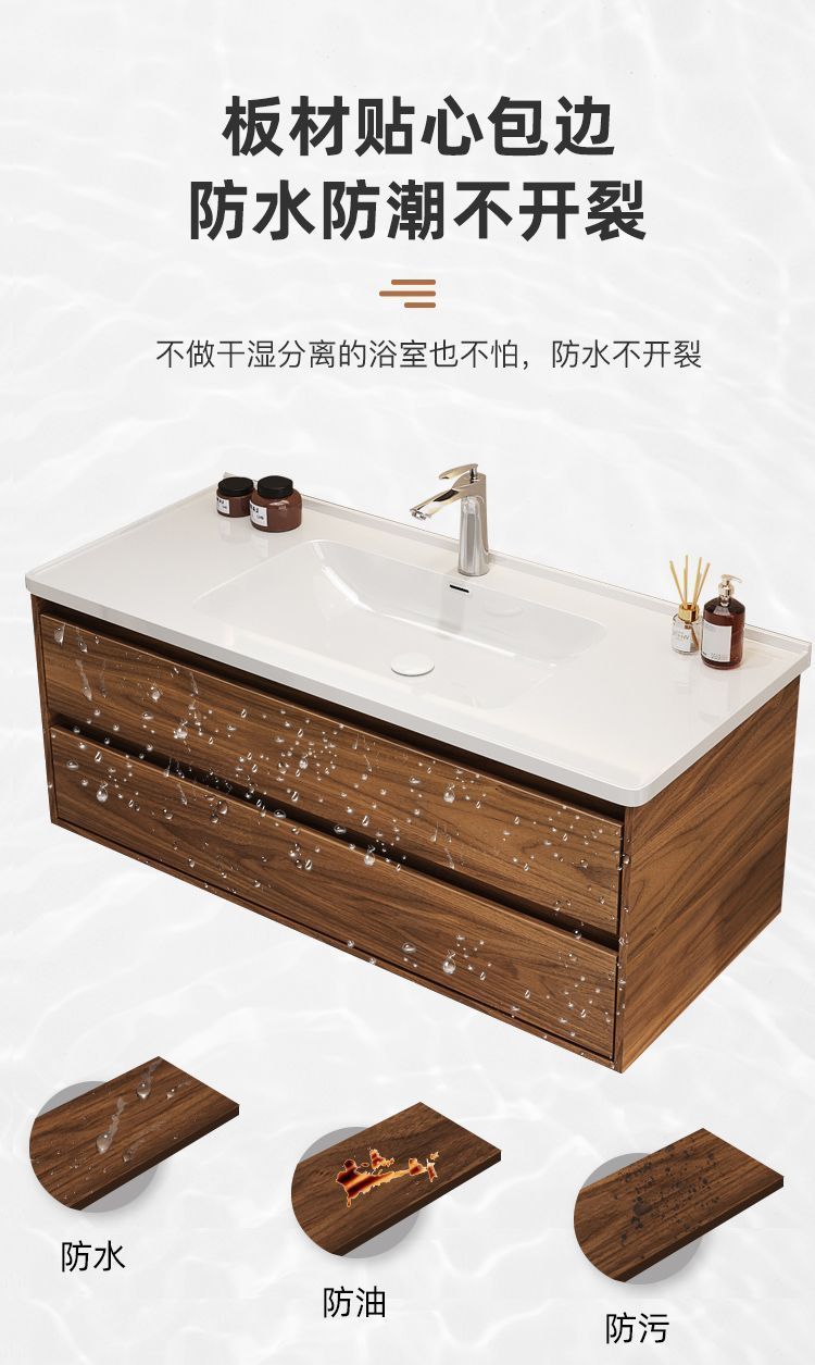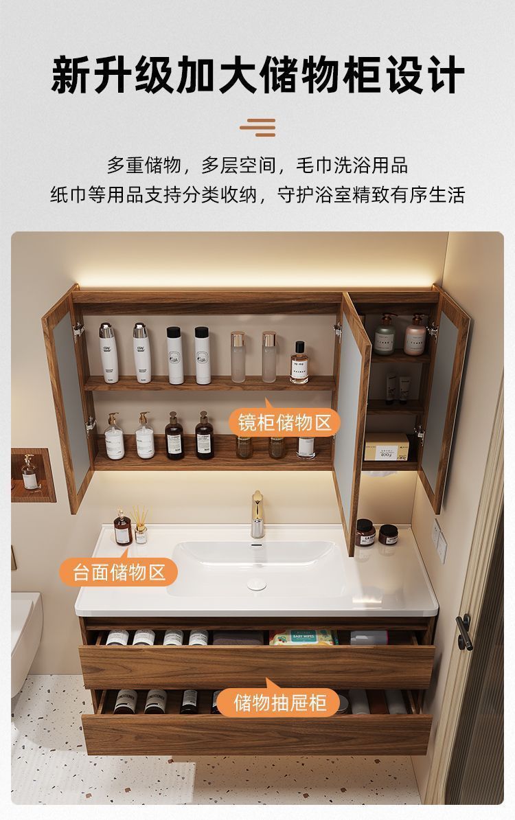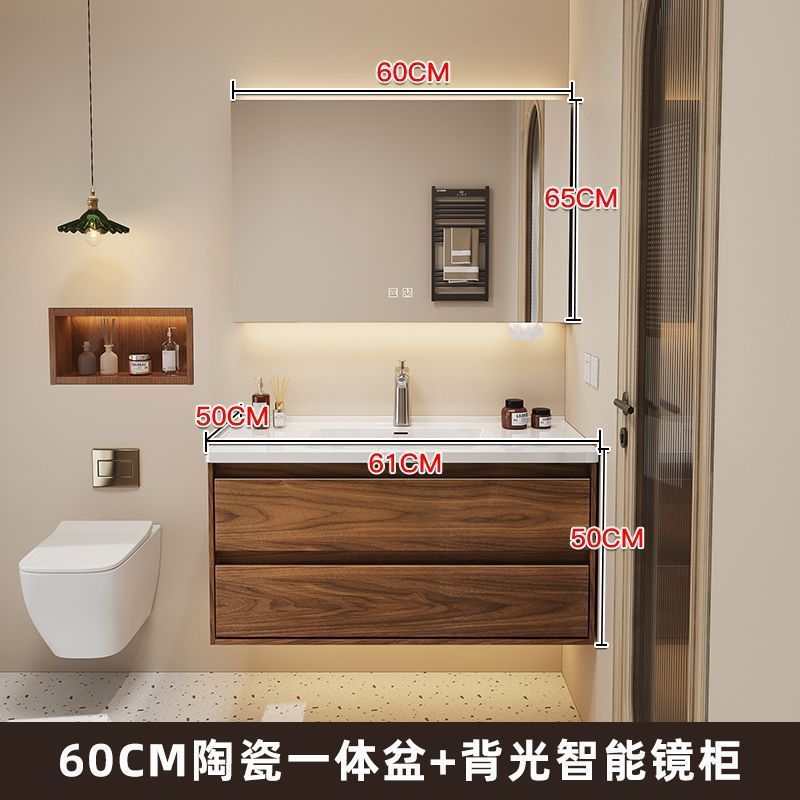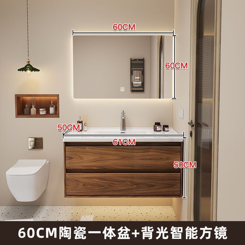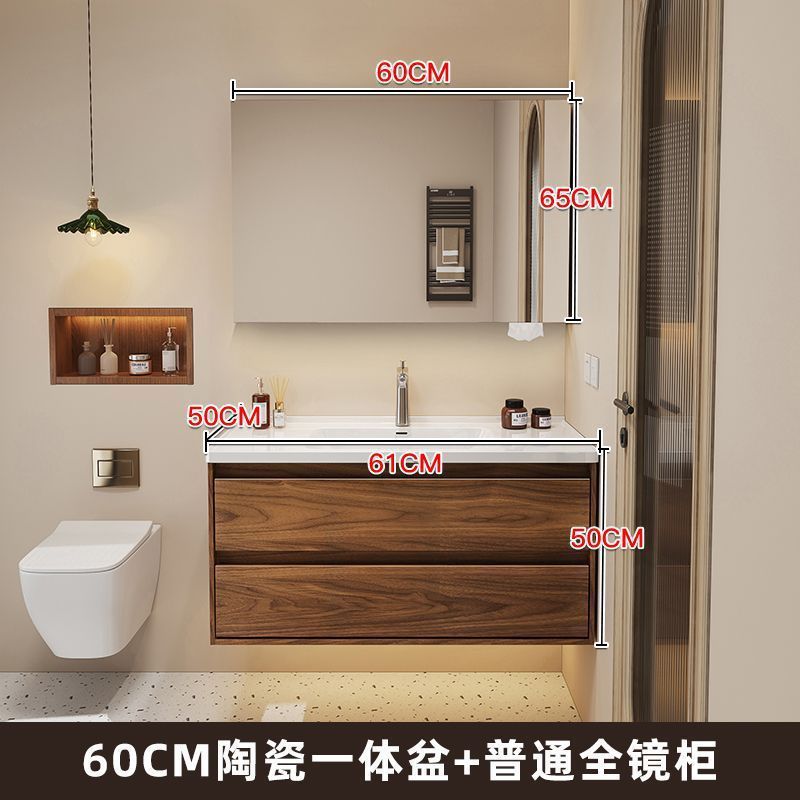 세면대 호두 나무 컬러 더블 서랍 욕실 캐비닛 욕실 세척 세라믹 통합 세면대 조합 장식품스토어 가기