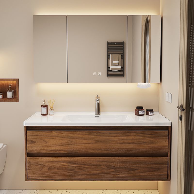 세면대 호두 나무 컬러 더블 서랍 욕실 캐비닛 욕실 세척 세라믹 통합 세면대 조합 장식품