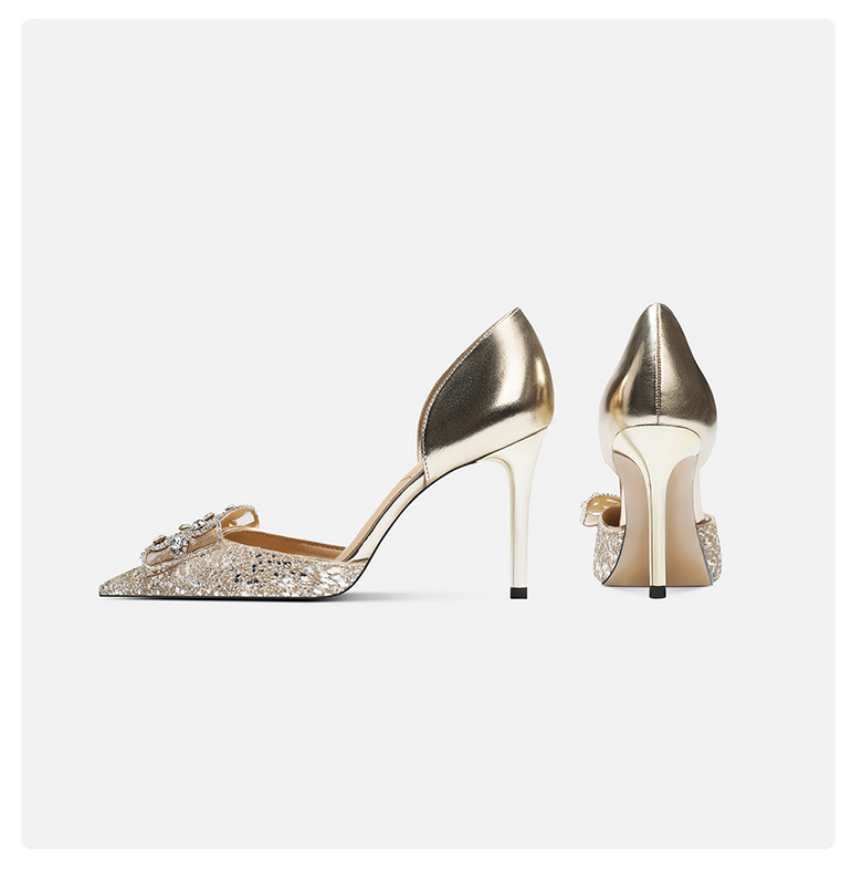 708-C66 프랑스 하이힐 할로우 신발 메쉬 라인스톤 활 새로운 우아한 양가죽 피곤하지 않은 발