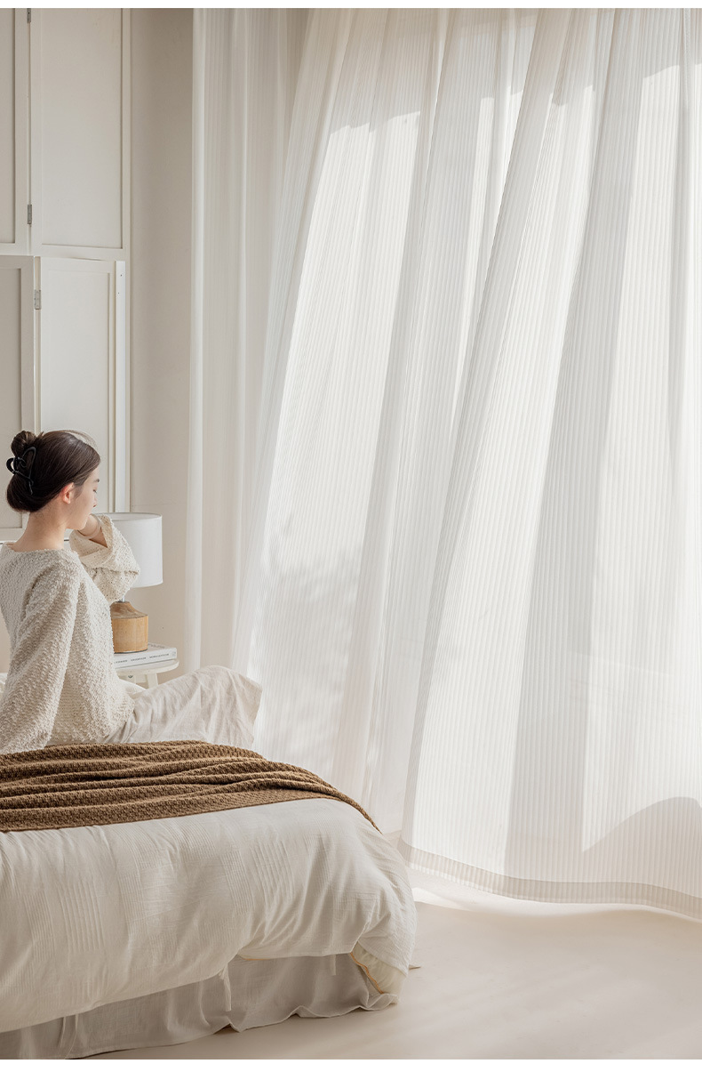 수직 베네치아 창 화면 커튼 2024 새로운 판타지 빛 투명 불사한 발코니 거실 침실 베이 창 간단한 흰색 거즈