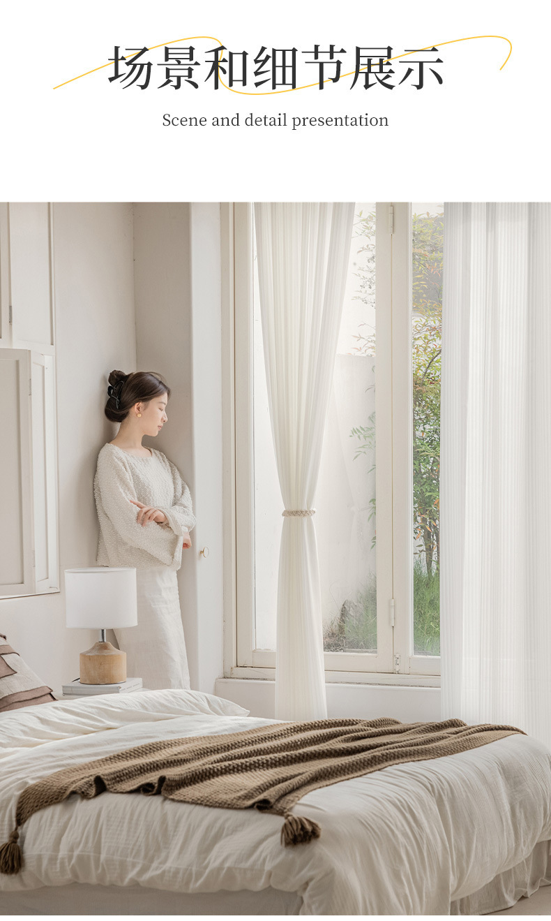 수직 베네치아 창 화면 커튼 2024 새로운 판타지 빛 투명 불사한 발코니 거실 침실 베이 창 간단한 흰색 거즈스토어 가기