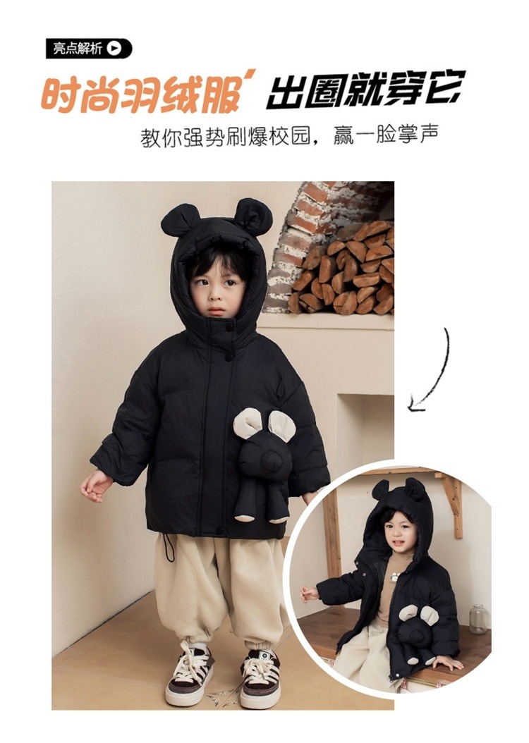 안티 시즌 새로운 다운 재킷 남성 보물 여성의 보물 짧은 두꺼운 서양식 만화 화이트 덕 다운 후드 자켓 트렌디