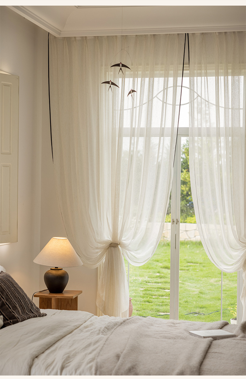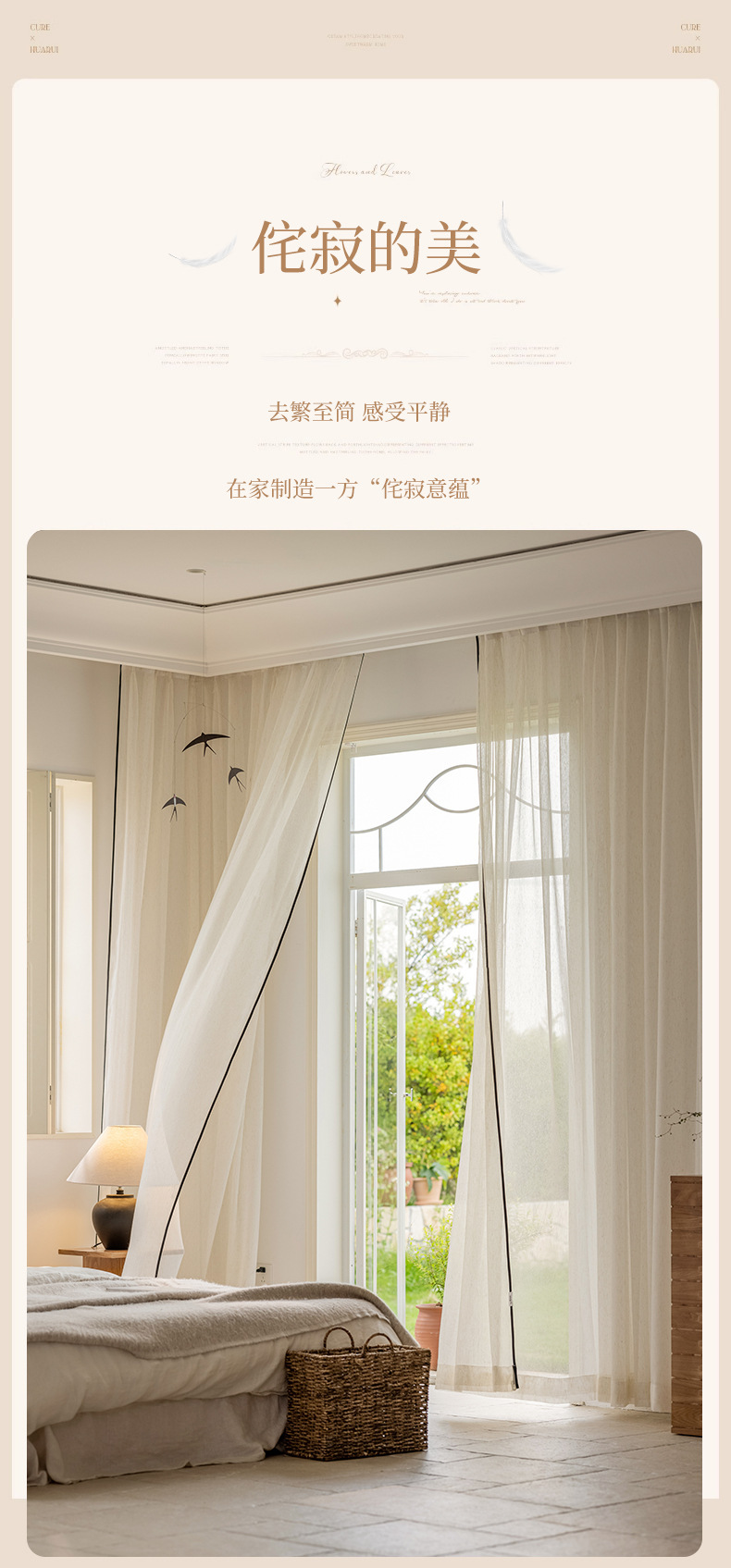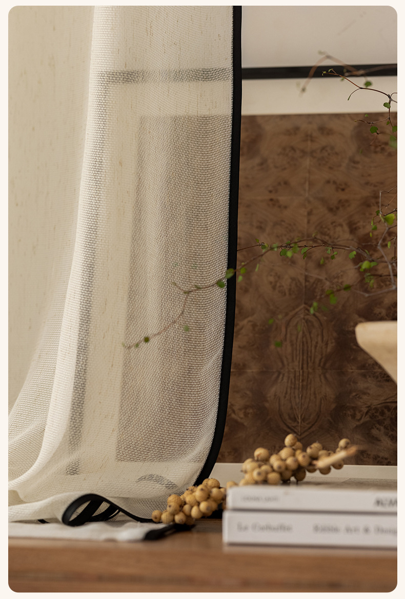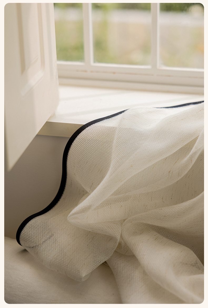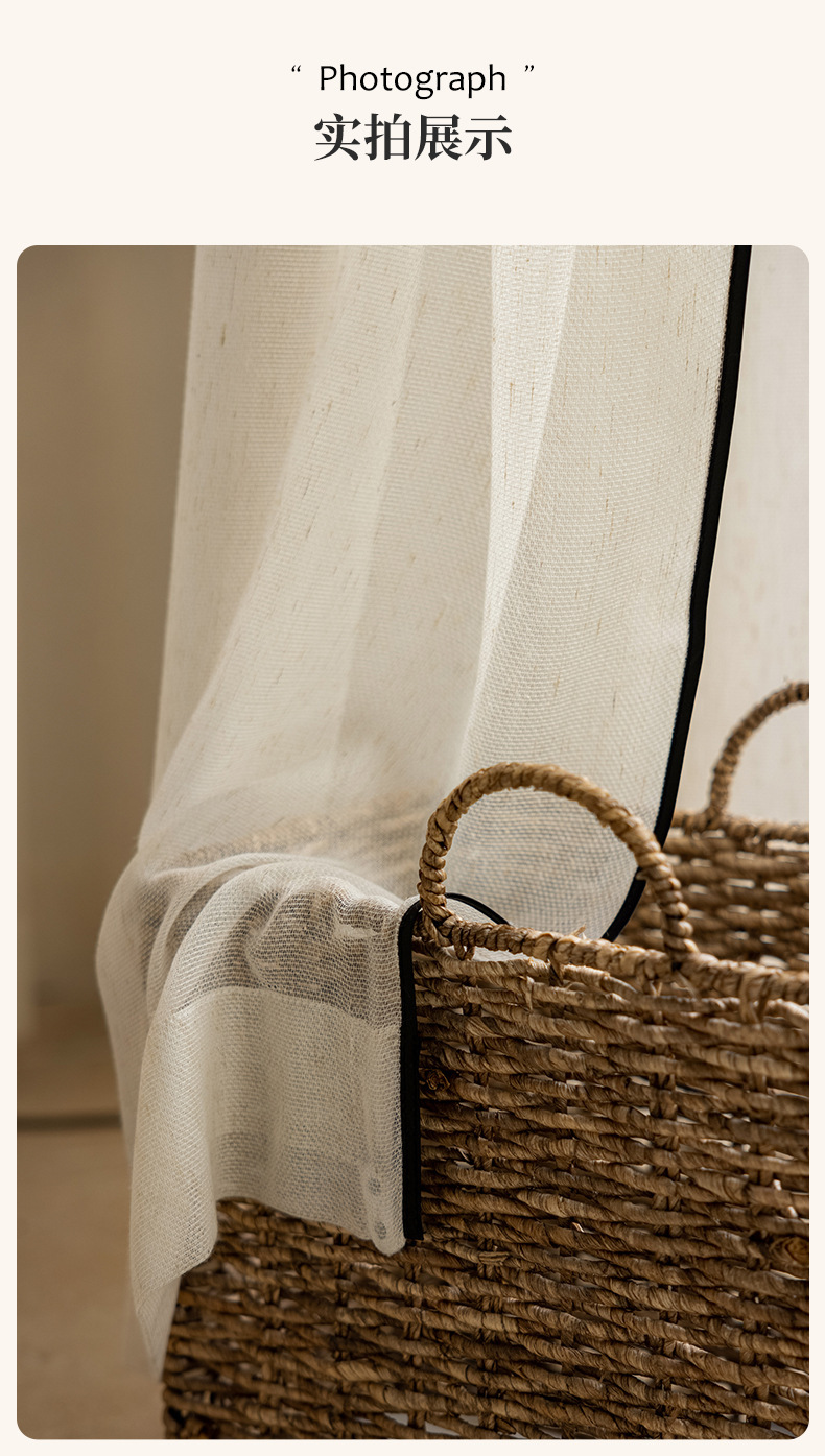 프랑스산 린넨 커튼, 검은색 테두리, 빛은 투과하지만 사람을 보이지 않게 하는 중세 일본식 와비사비 스타일, 창가 거실용 쉬폰 커튼, 차양막
