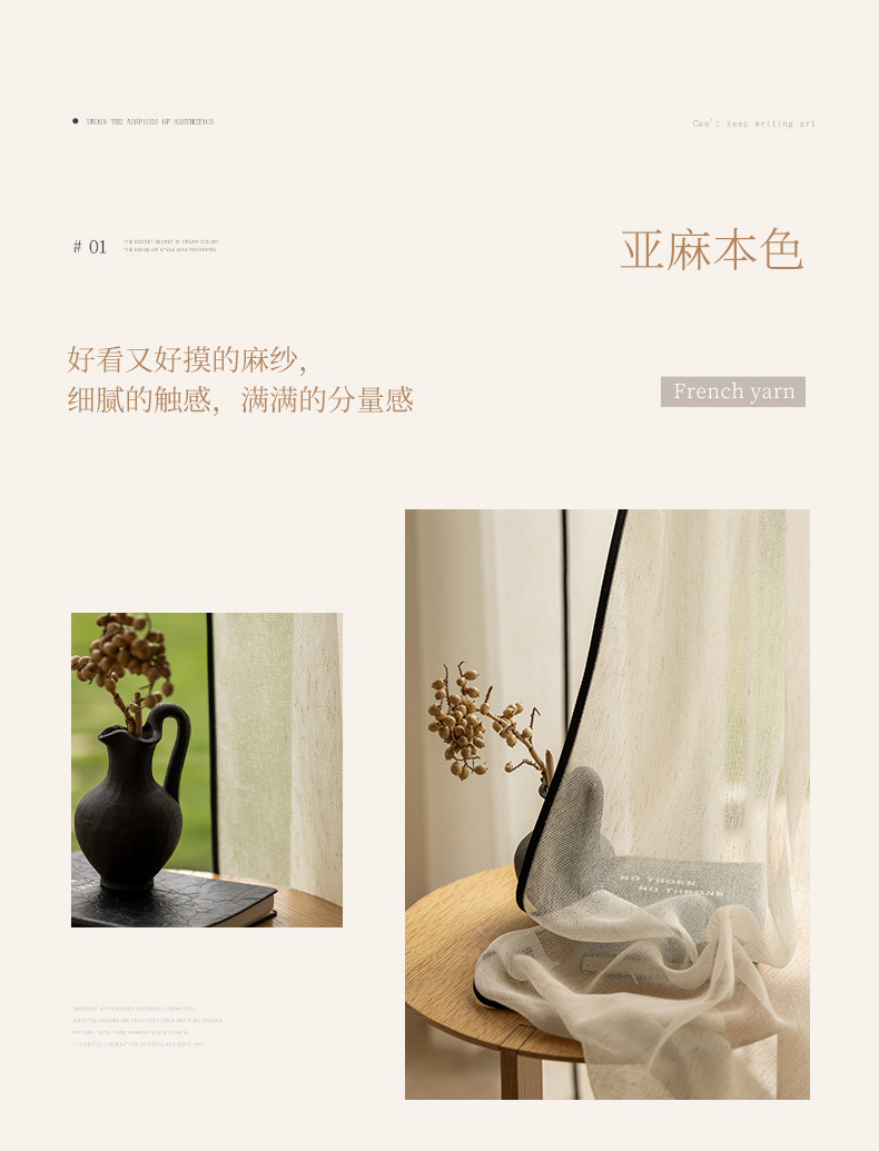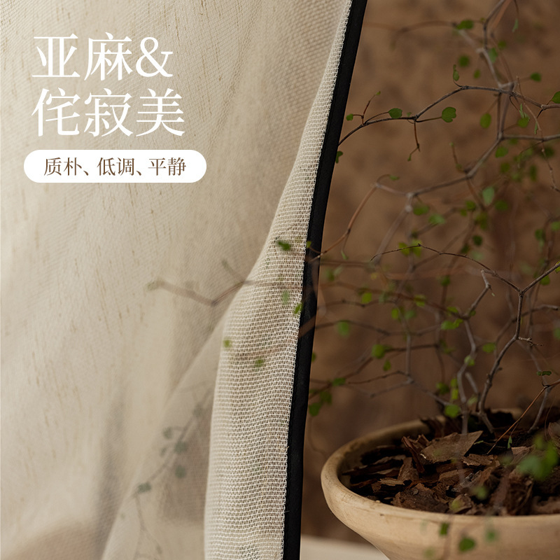 프랑스산 린넨 커튼, 검은색 테두리, 빛은 투과하지만 사람을 보이지 않게 하는 중세 일본식 와비사비 스타일, 창가 거실용 쉬폰 커튼, 차양막스토어 가기