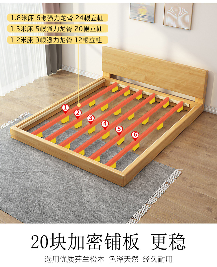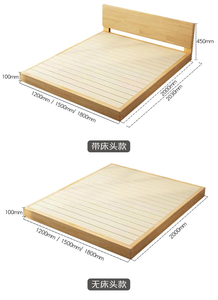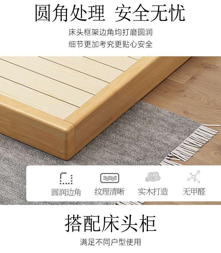 몬테소리 어린이용 플랫베드, 바닥침대, 낮은침대, 원목 다다미침대, 침대머리 없는 로프트형 소형가구 플랫베드