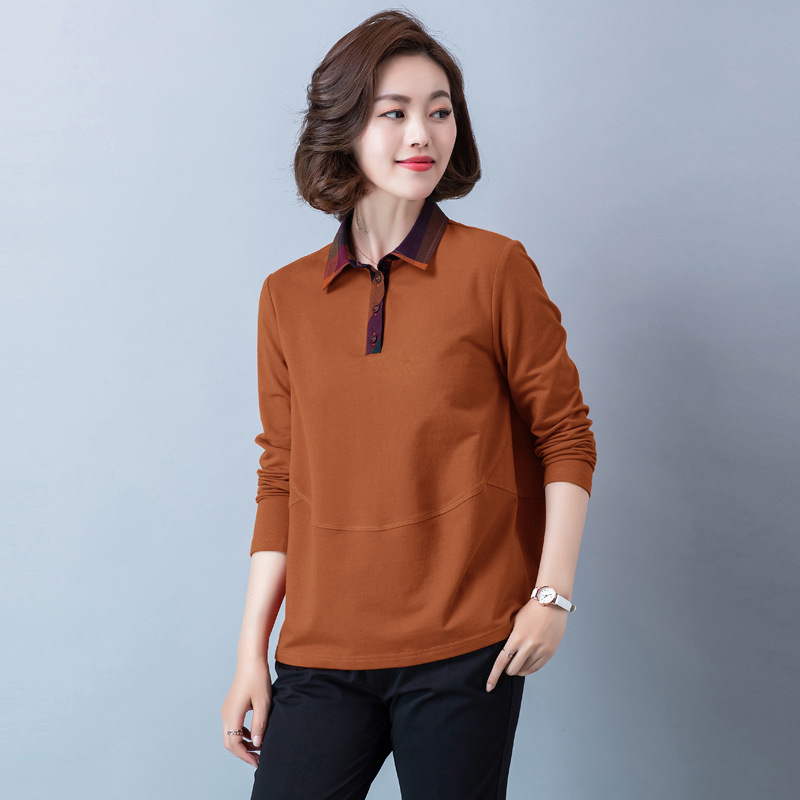 19 가을 엄마의 새로운 스타일 바닥 셔츠 긴팔 대비 색 사각 넥 티셔츠 루즈 캐주얼 중년 여성상의