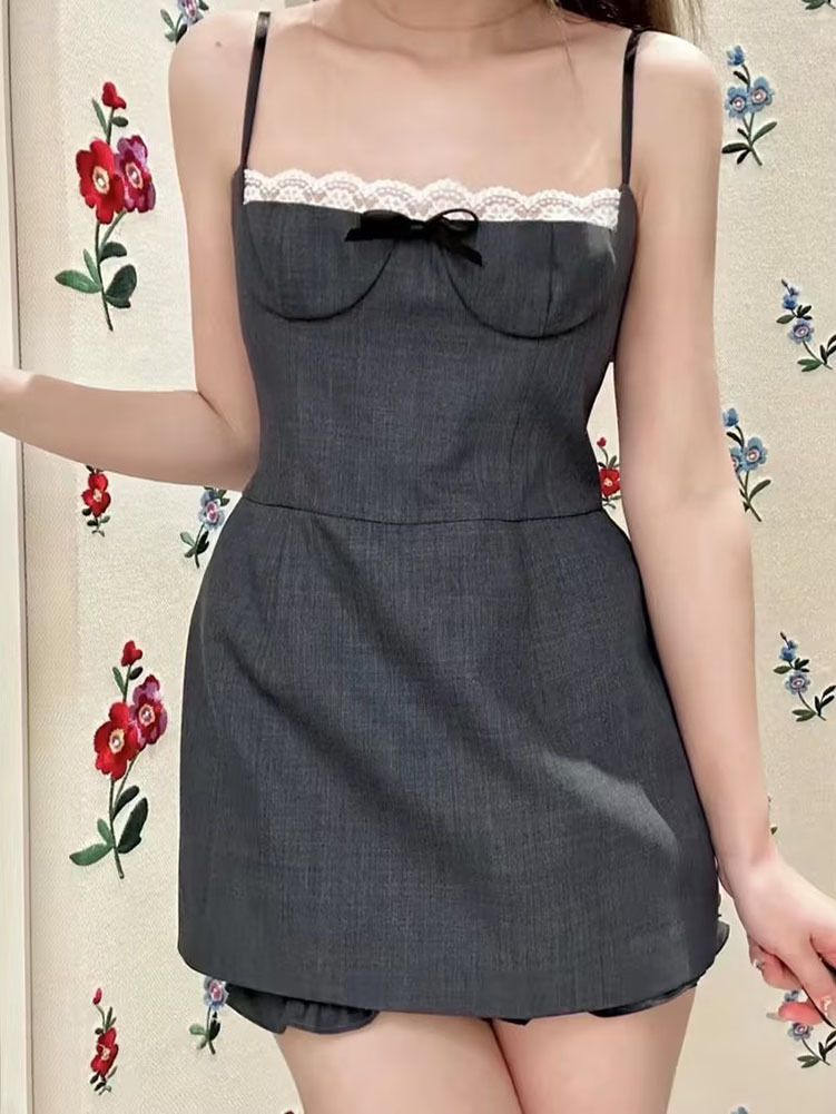 2024春夏新款小个子蕾丝拼接高级感双层裙边吊带短连衣裤裙 M1023