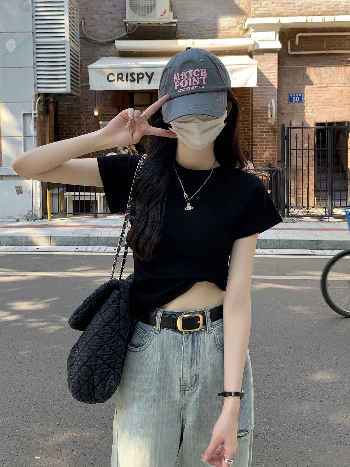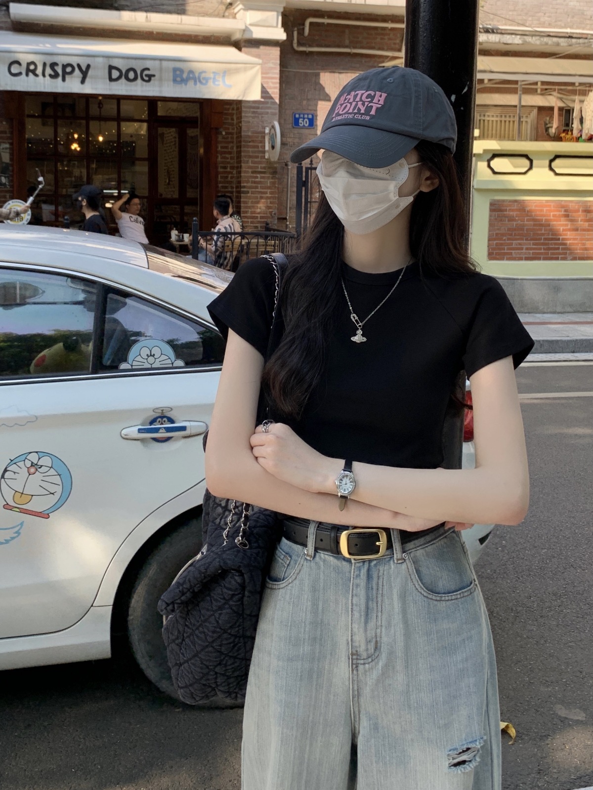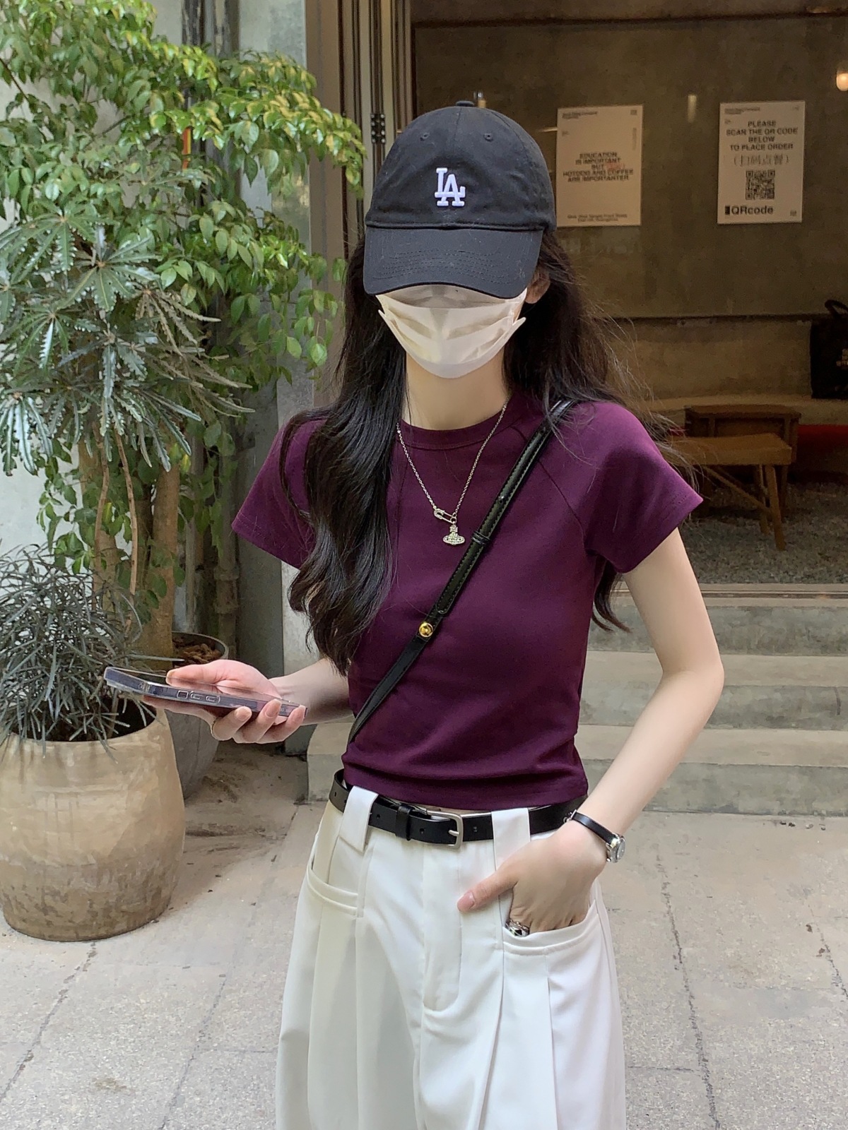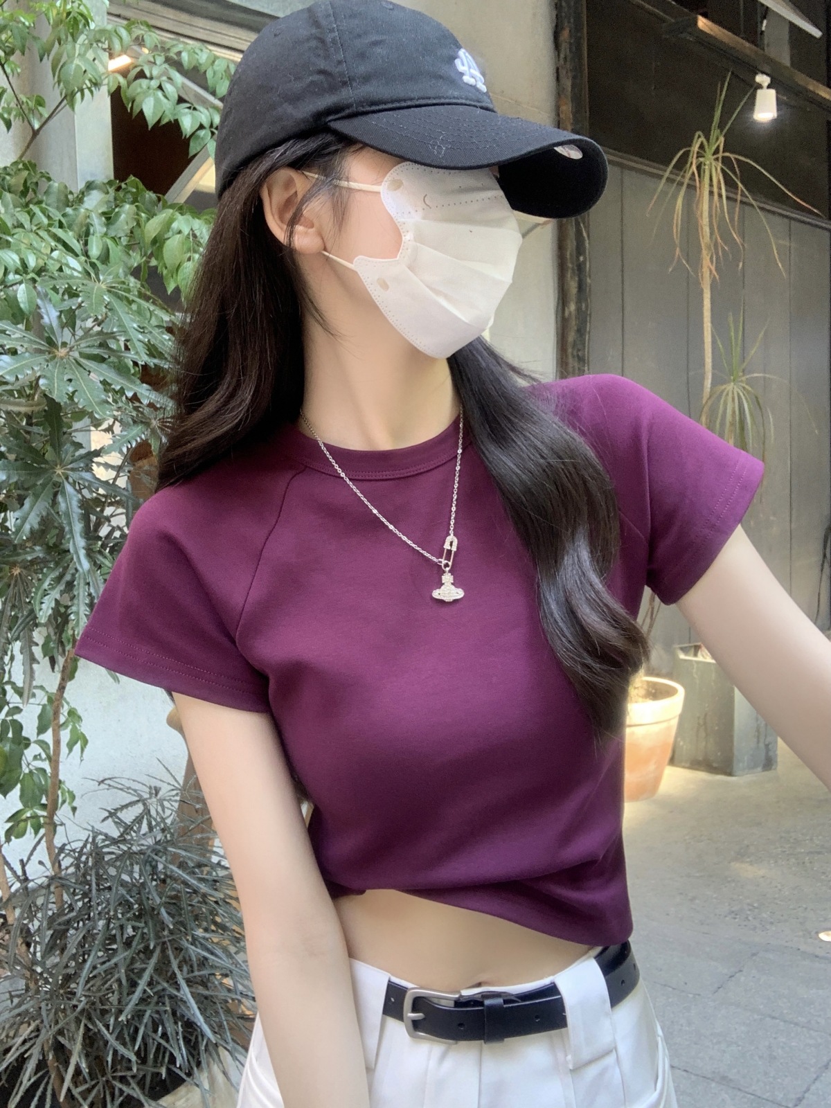 2024夏季新款女装韩版修身插肩显瘦百搭色圆领短袖T恤女上衣潮스토어 가기
