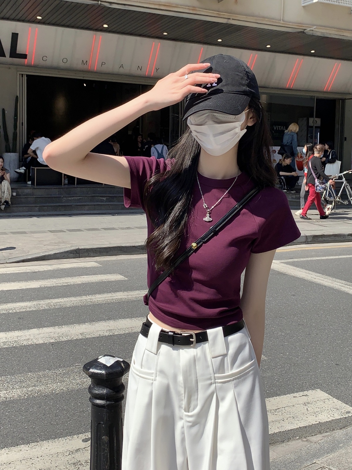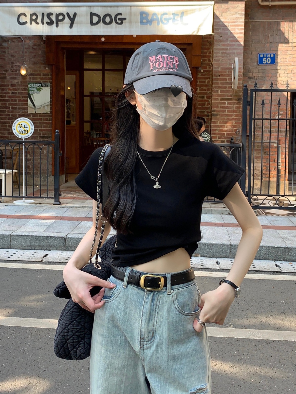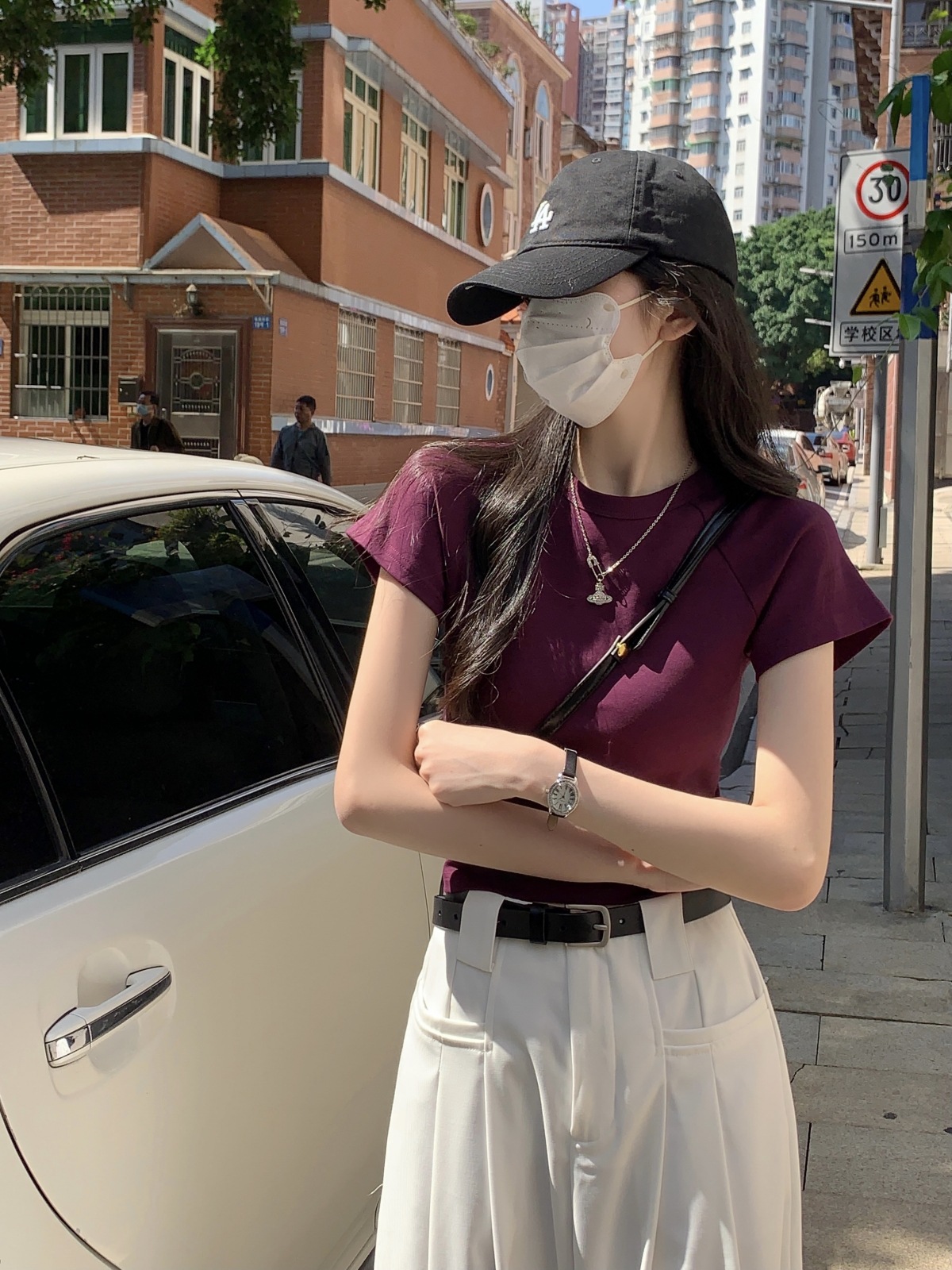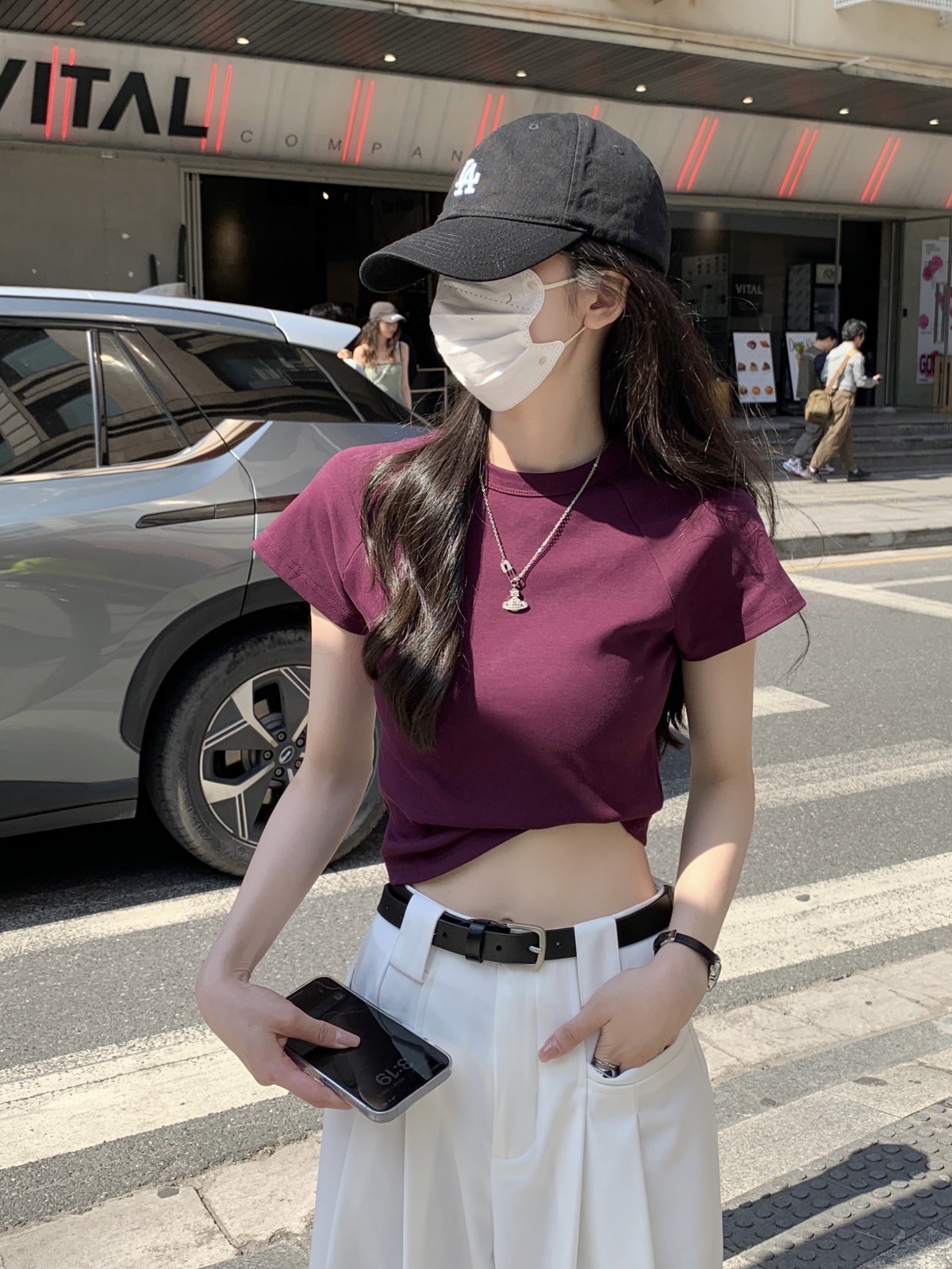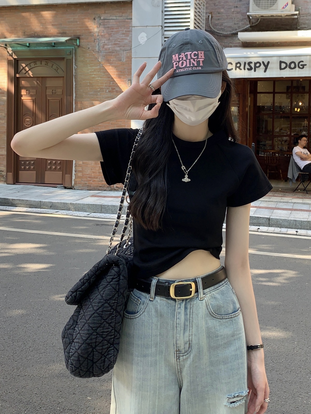 2024夏季新款女装韩版修身插肩显瘦百搭色圆领短袖T恤女上衣潮스토어 가기