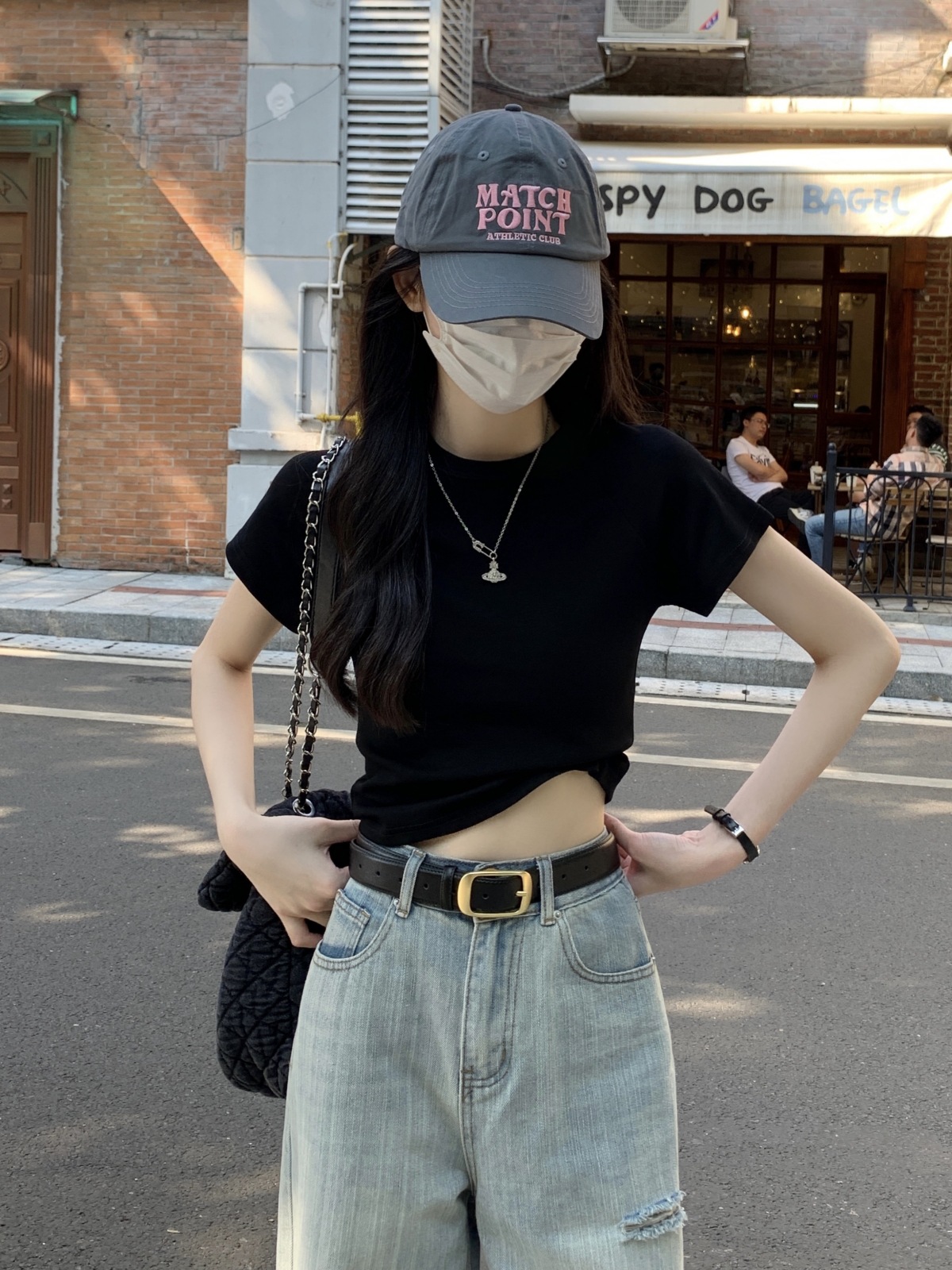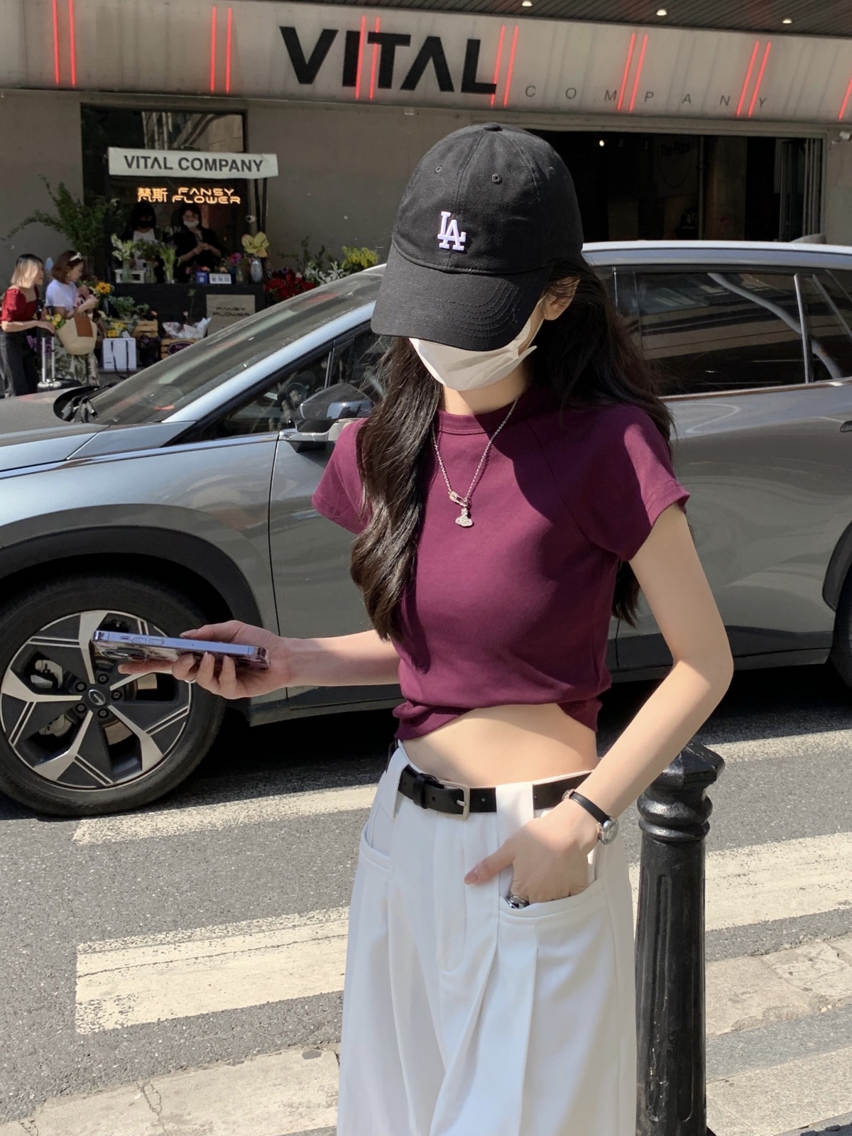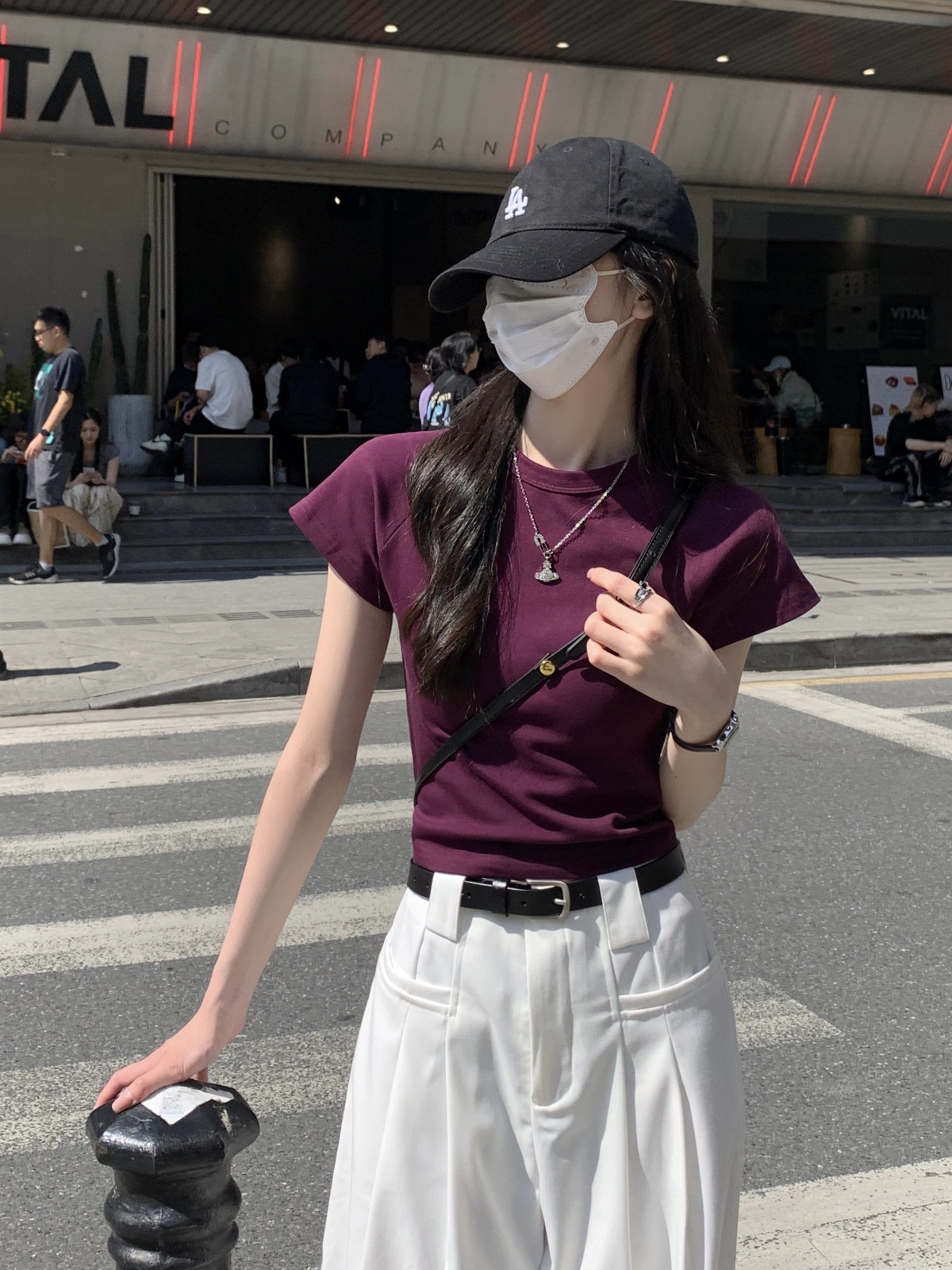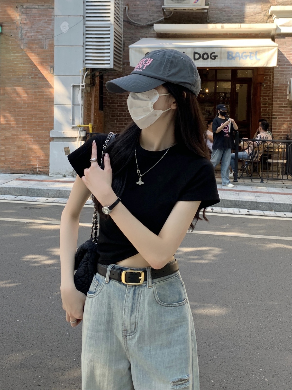 2024夏季新款女装韩版修身插肩显瘦百搭色圆领短袖T恤女上衣潮스토어 가기