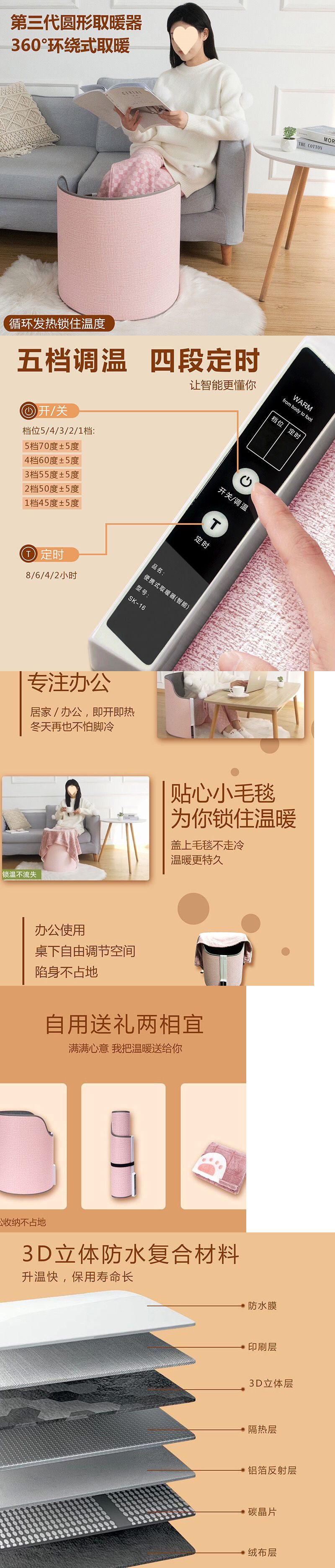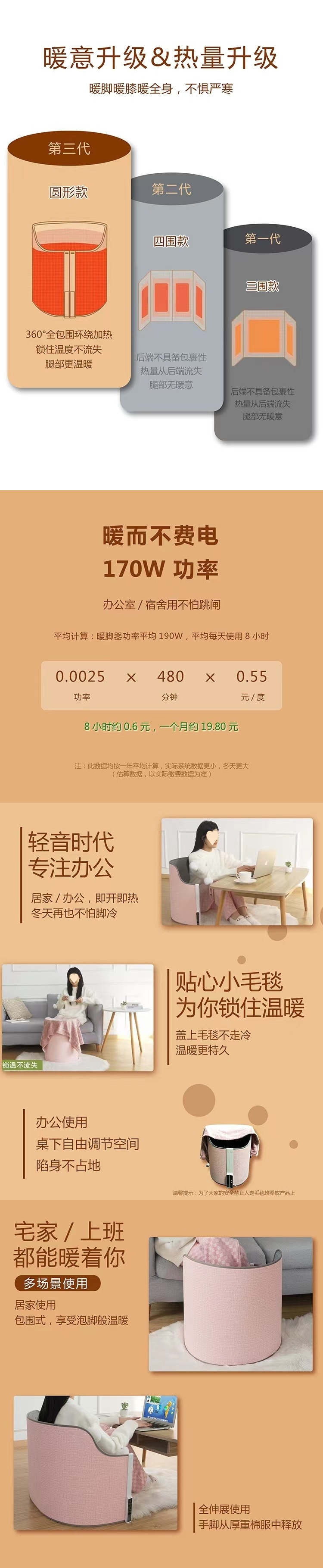 全包围取暖器办公室暖腿宝桌下圆形宿舍发热暖脚加热脚垫便携