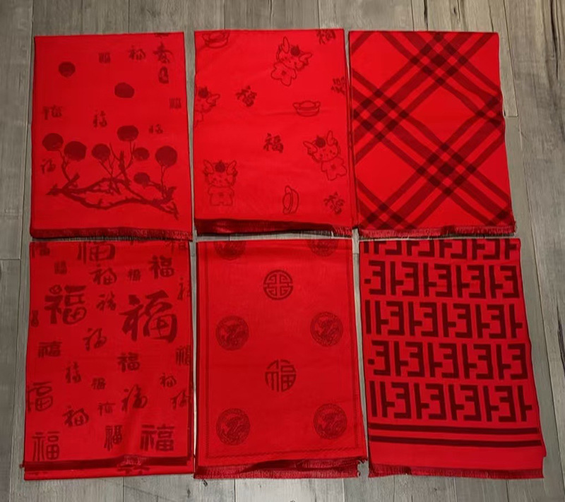 秋冬春节喜庆羊绒红色围巾福字送老人送新娘送礼物中国红本年围脖