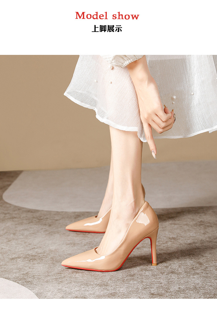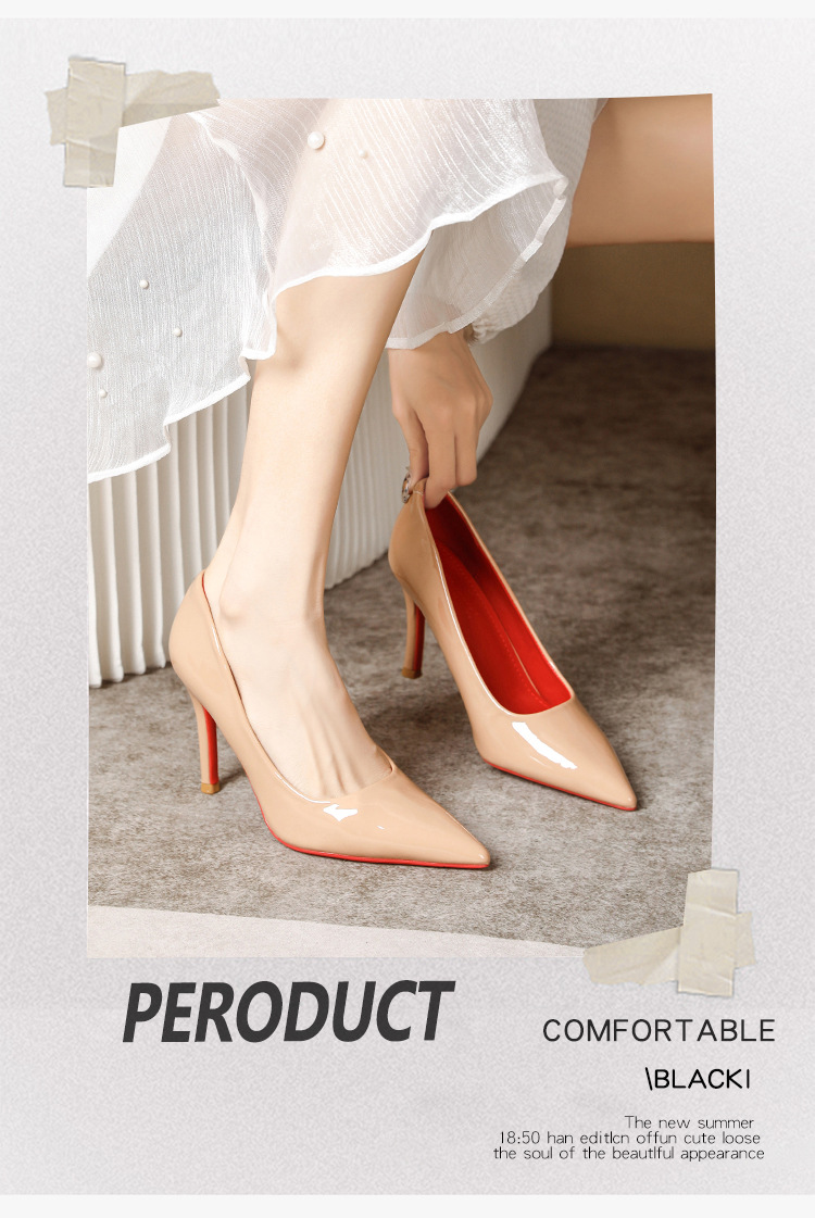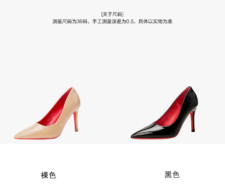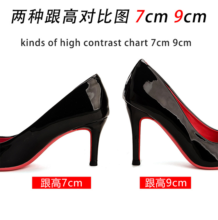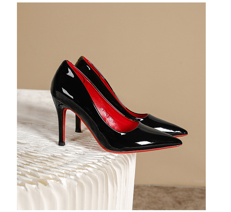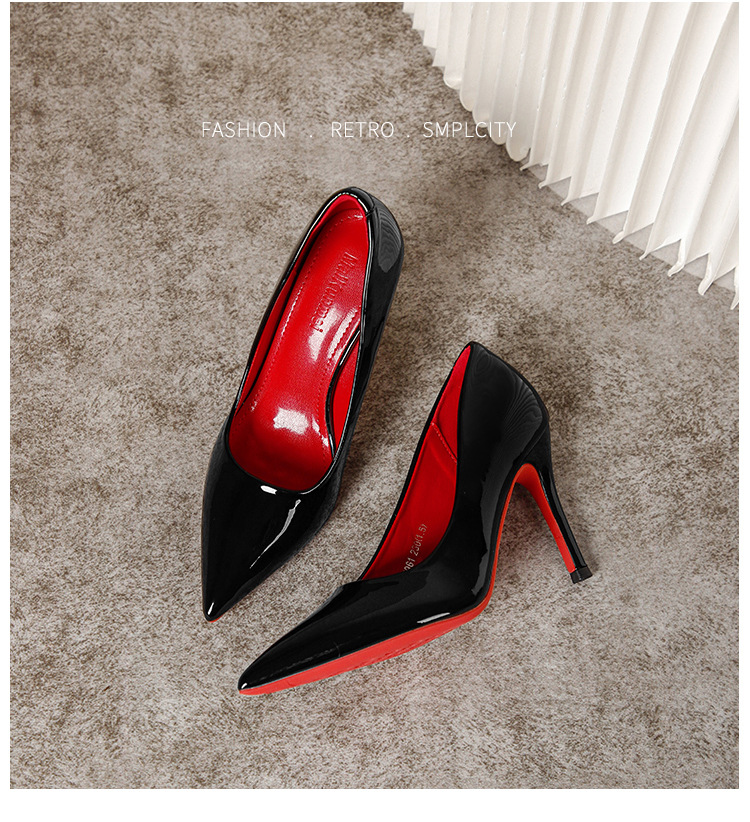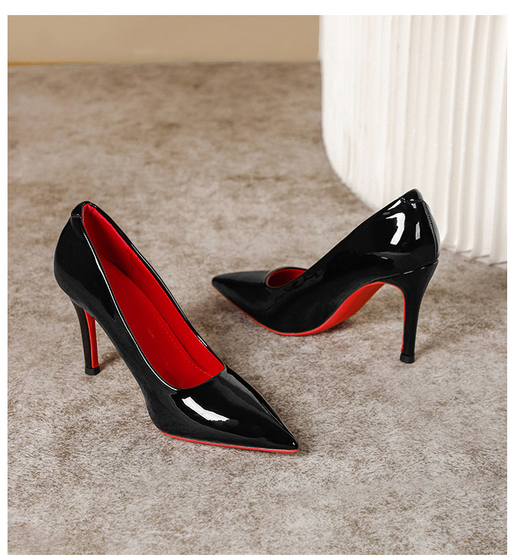 검은 색 특허 가죽 빨간 밑바닥 섹시한 전문 얕은 입 전문 작업 신발 여성 하이힐 봄과 가을 새로운 하이힐스토어 가기
