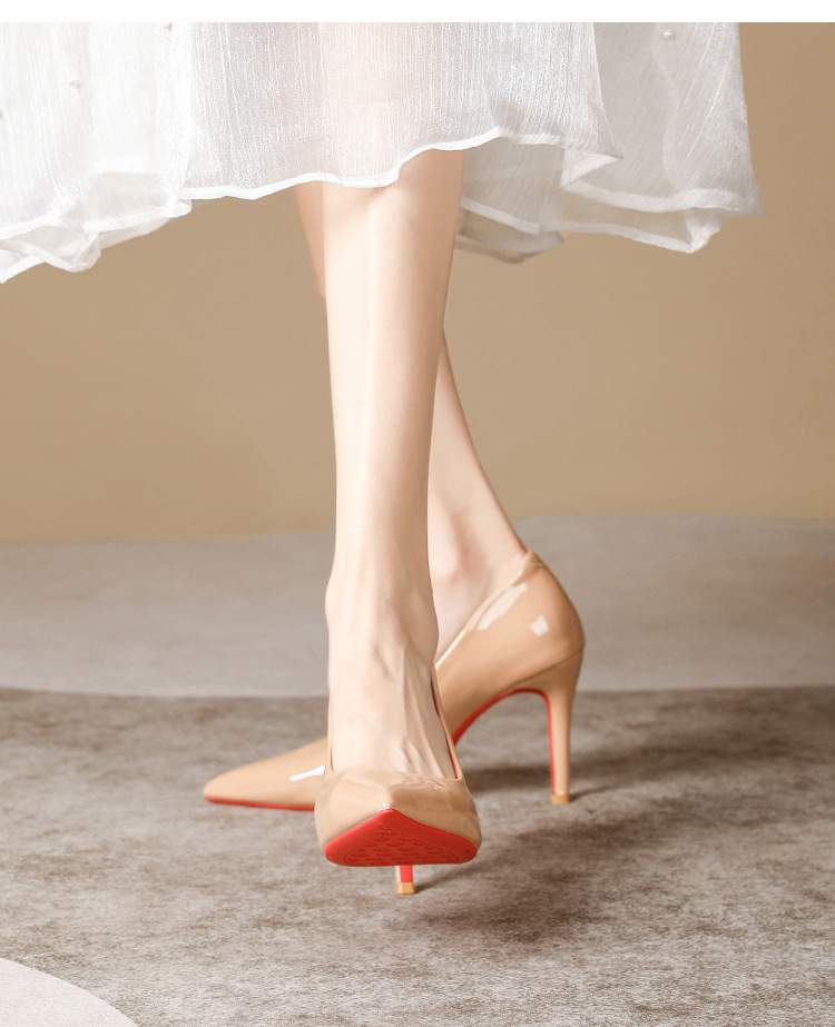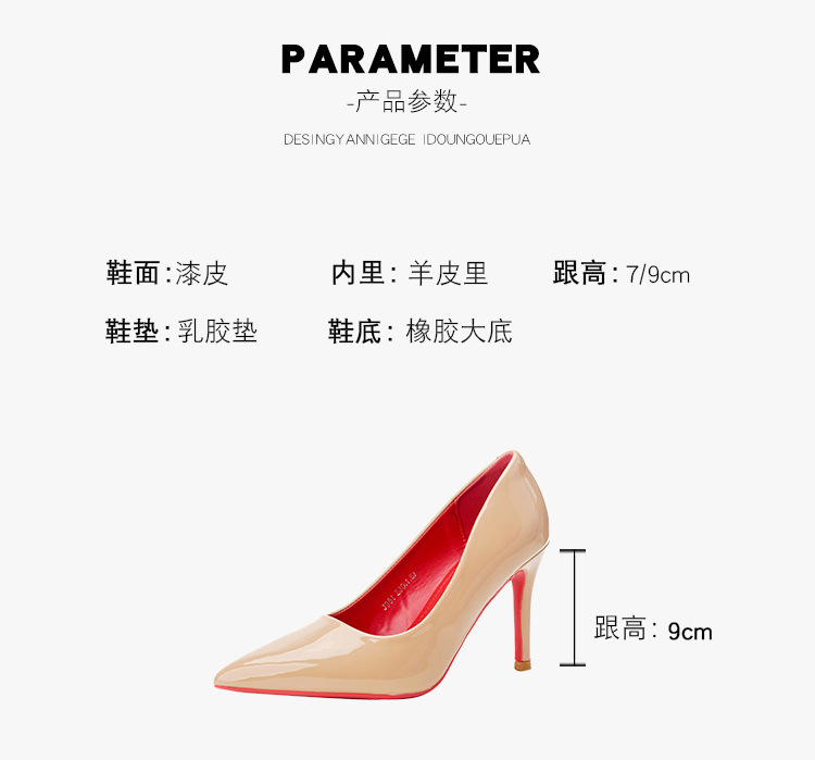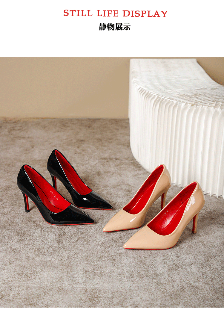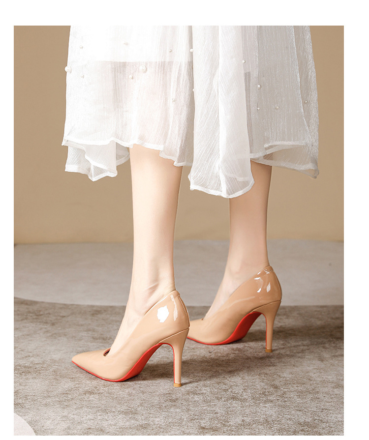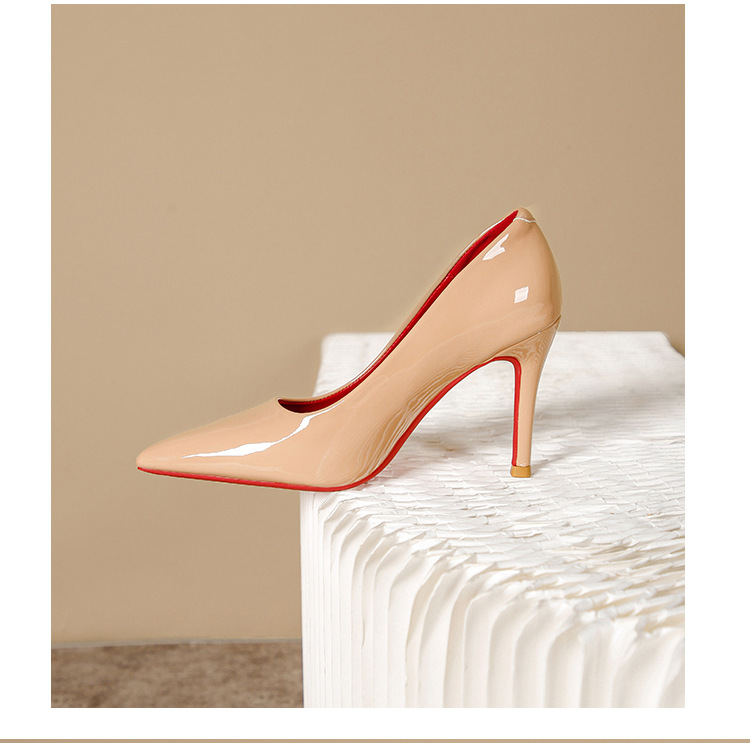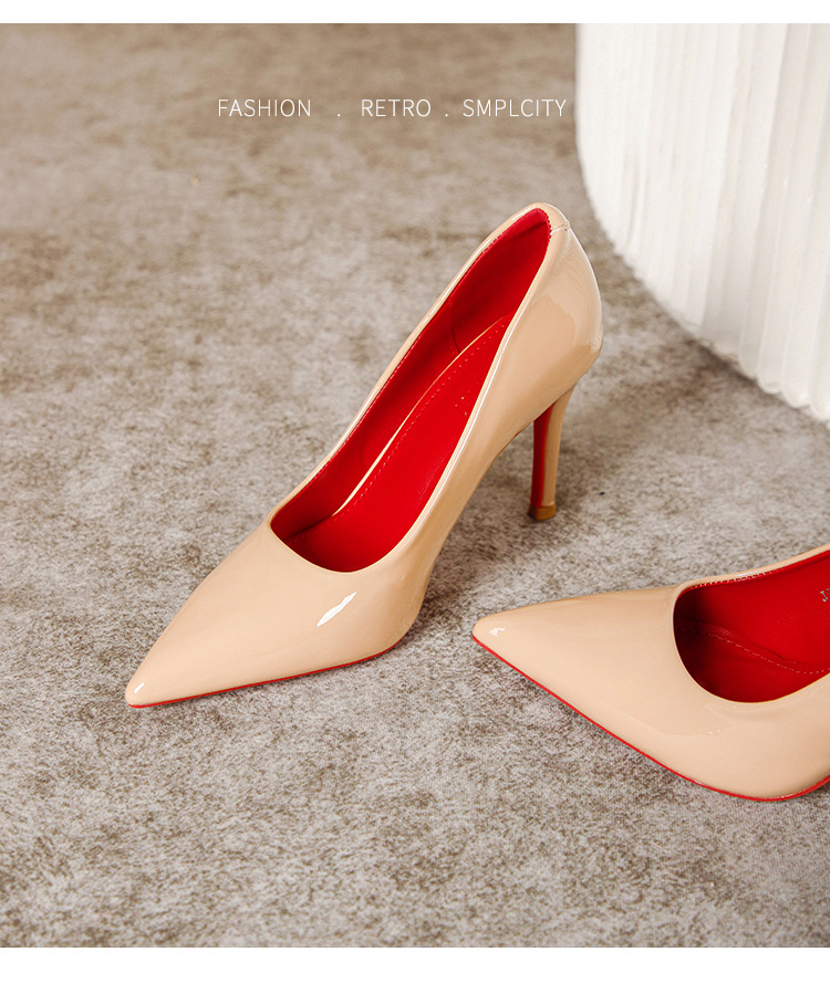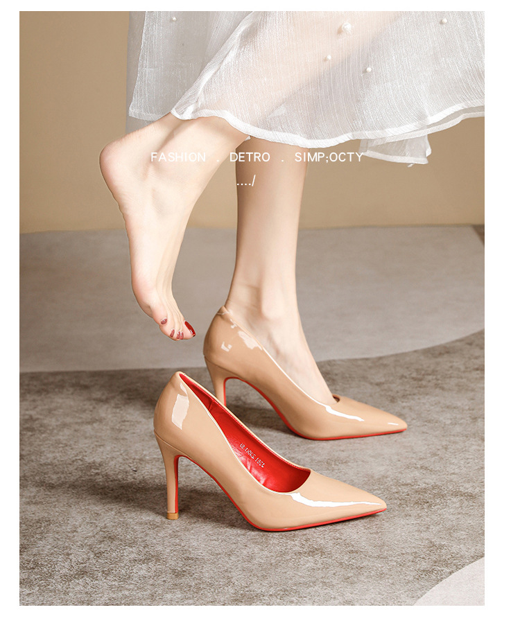 검은 색 특허 가죽 빨간 밑바닥 섹시한 전문 얕은 입 전문 작업 신발 여성 하이힐 봄과 가을 새로운 하이힐스토어 가기
